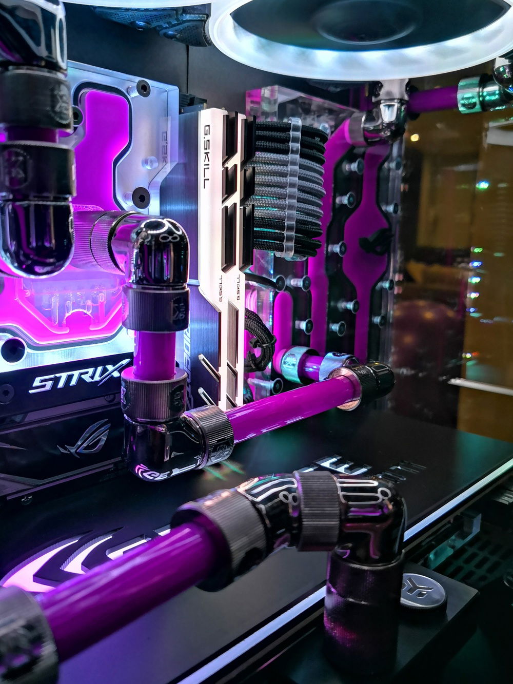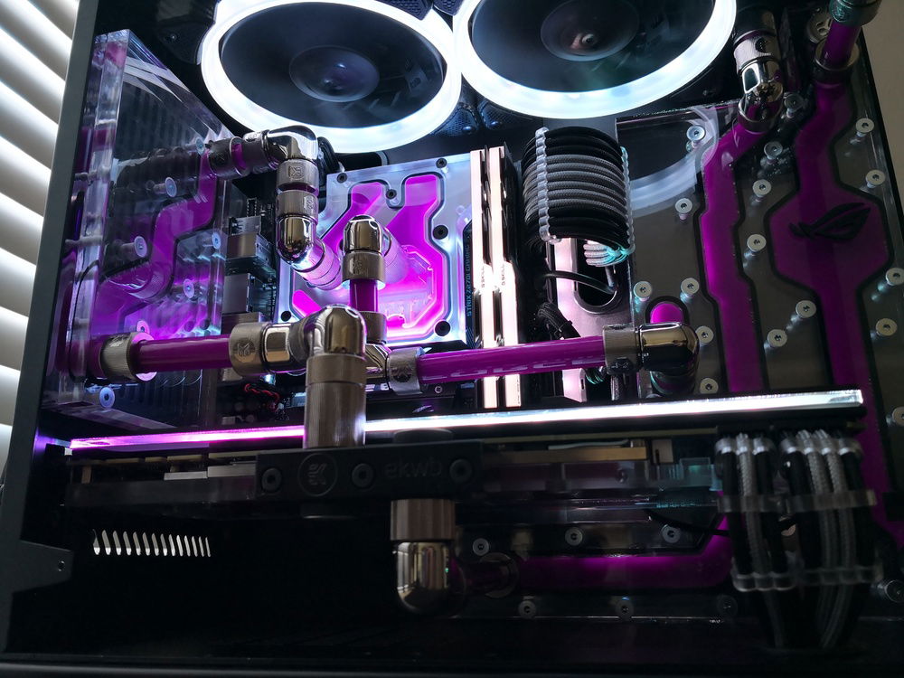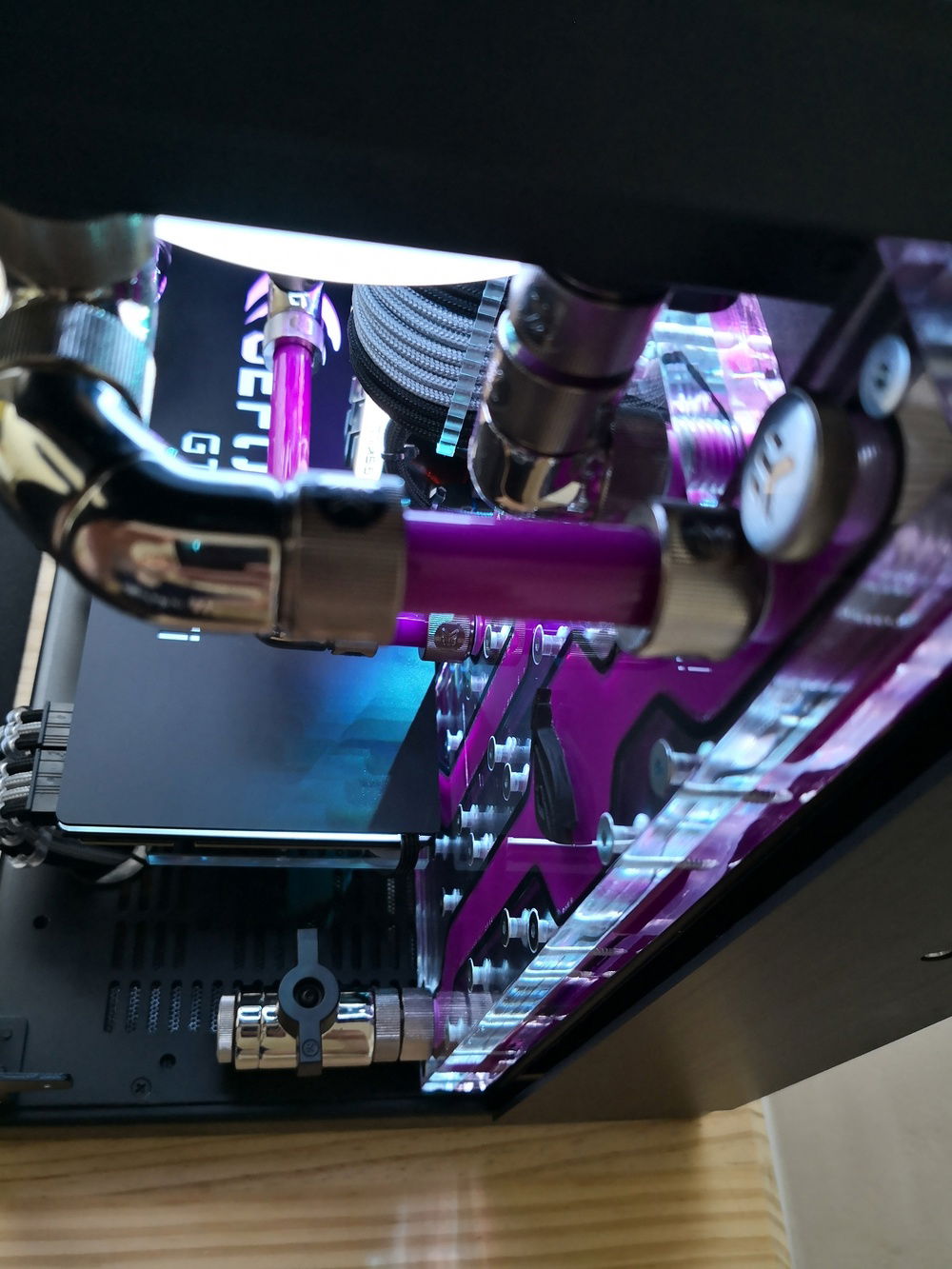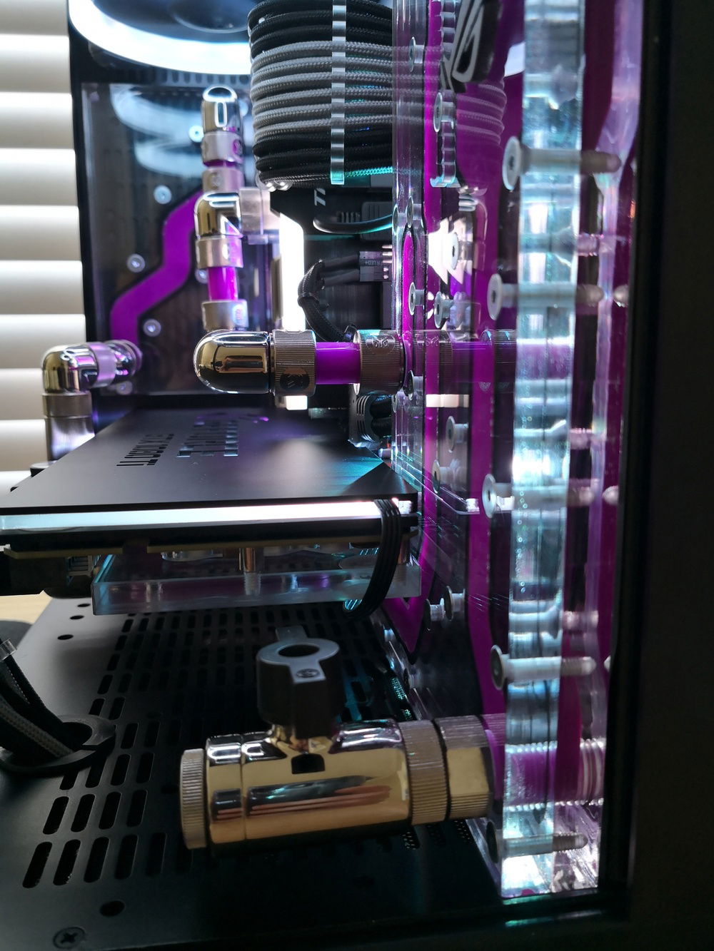 So this is my first custom loop build in a mini ITX case. Its my second hardline build, but this time I wanted to use connectors instead of bending any of the tubing. So I built it up using a boxfish res and a ton of fittings and some EK navy blue fluid, then was watching some modding on YouTube one day and saw guys building custom water channels - so back to the drawing board I went, designed both waterchannels and got them built, oh and also threw in some new EK solid electric purple fluid to make it really pop.