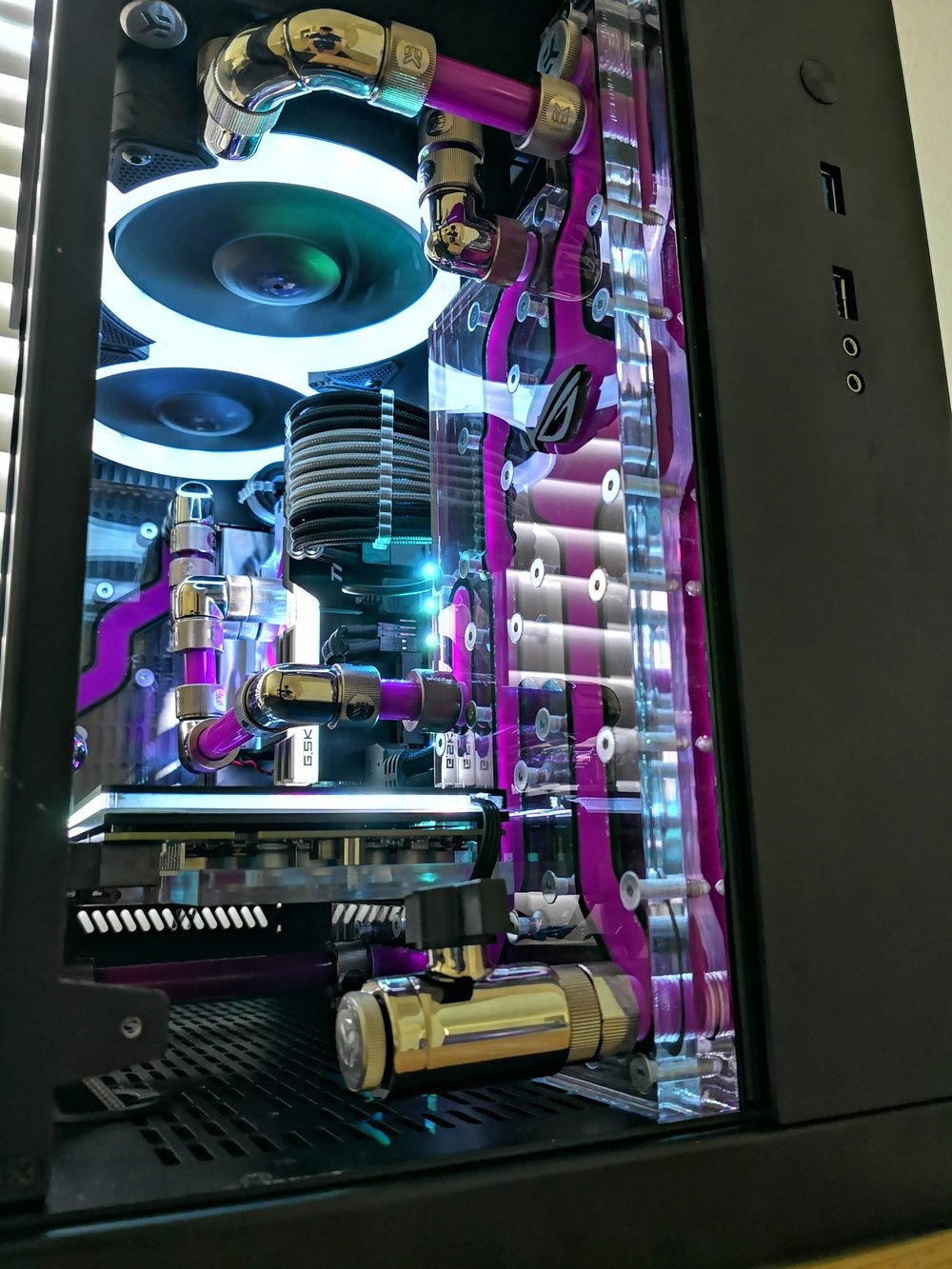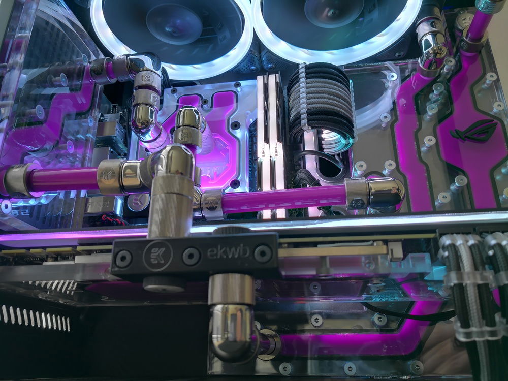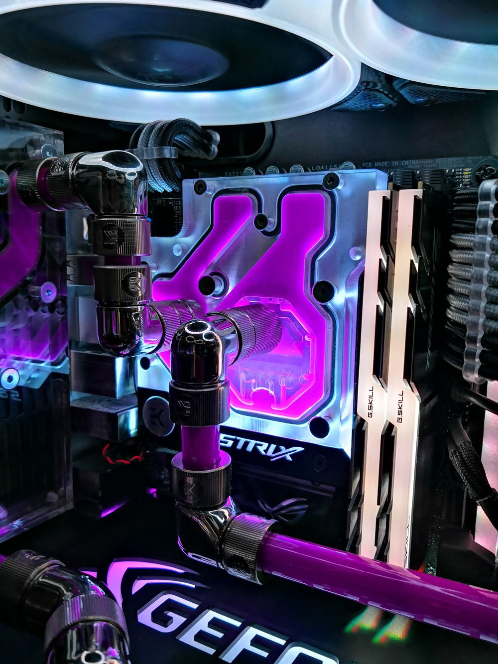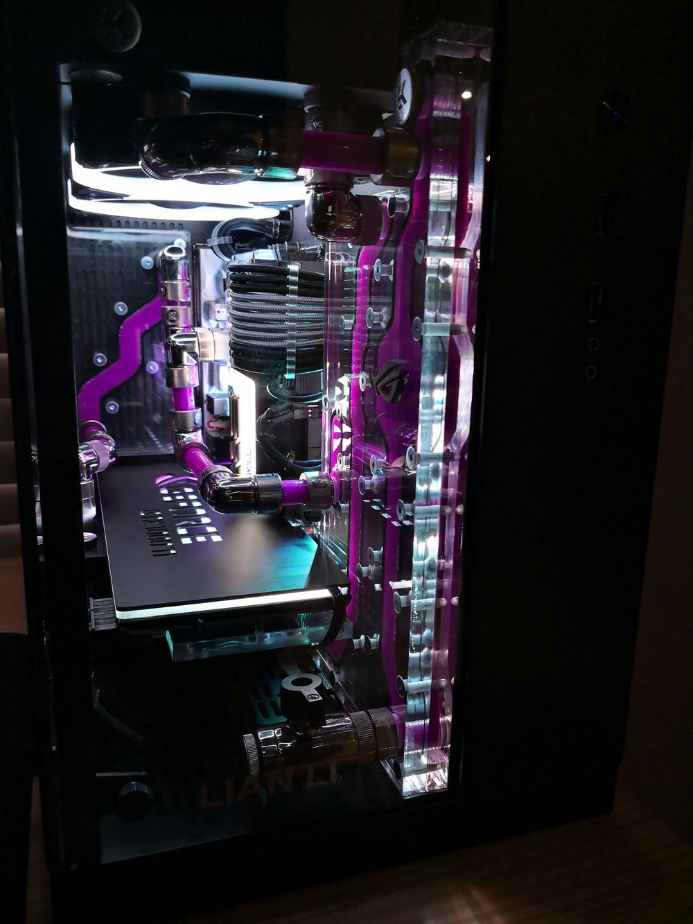 So this is my first custom loop build in a mini ITX case. Its my second hardline build, but this time I wanted to use connectors instead of bending any of the tubing. So I built it up using a boxfish res and a ton of fittings and some EK navy blue fluid, then was watching some modding on YouTube one day and saw guys building custom water channels - so back to the drawing board I went, designed both waterchannels and got them built, oh and also threw in some new EK solid electric purple fluid to make it really pop.