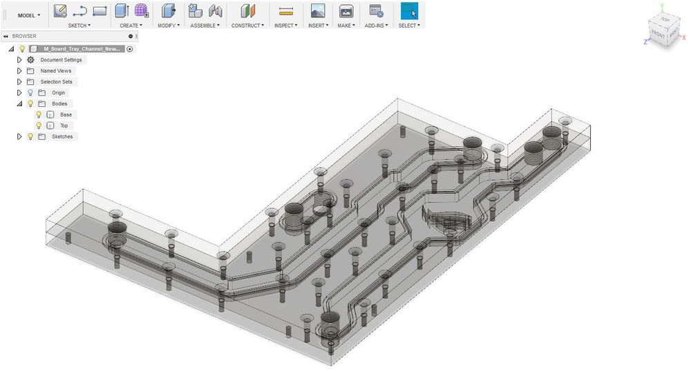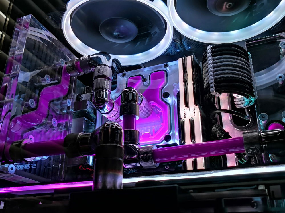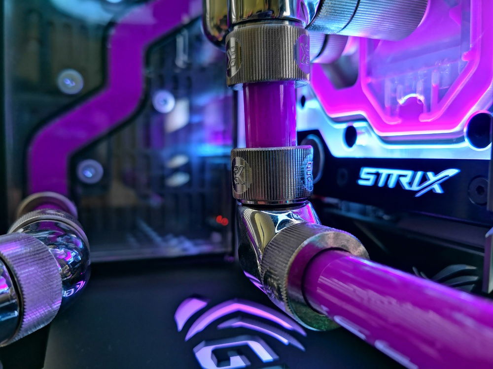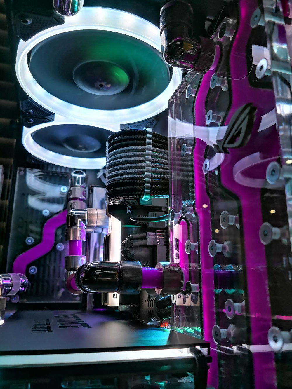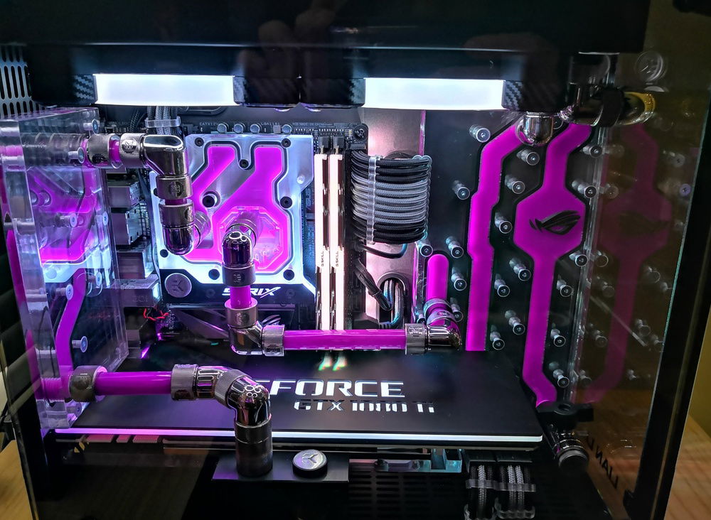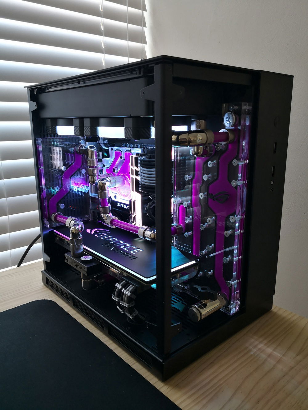 So this is my first custom loop build in a mini ITX case. Its my second hardline build, but this time I wanted to use connectors instead of bending any of the tubing. So I built it up using a boxfish res and a ton of fittings and some EK navy blue fluid, then was watching some modding on YouTube one day and saw guys building custom water channels - so back to the drawing board I went, designed both waterchannels and got them built, oh and also threw in some new EK solid electric purple fluid to make it really pop.