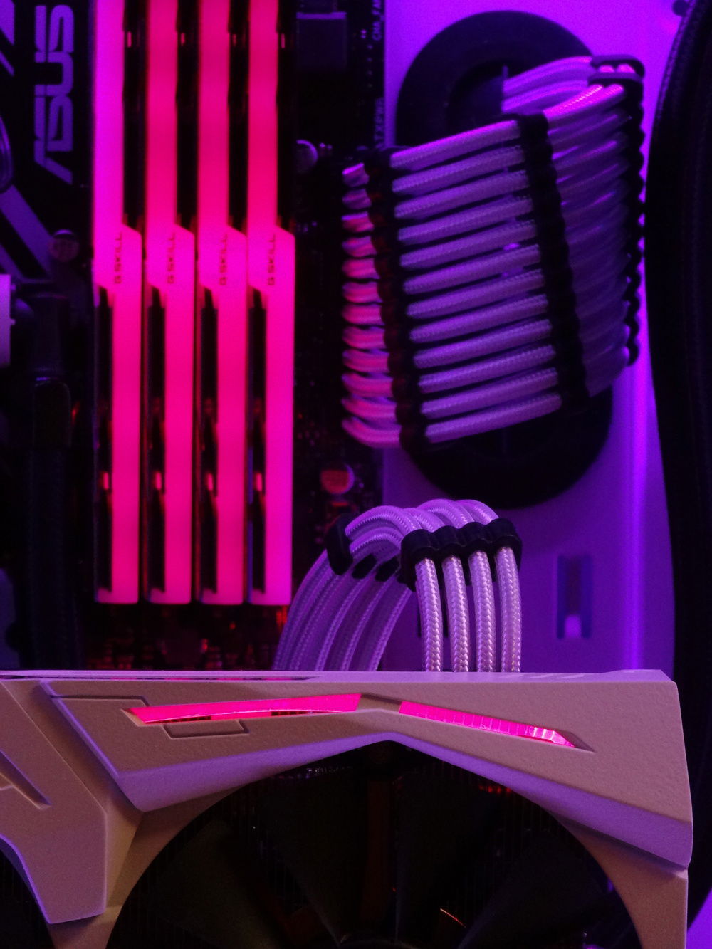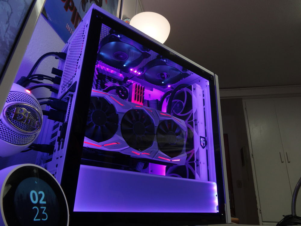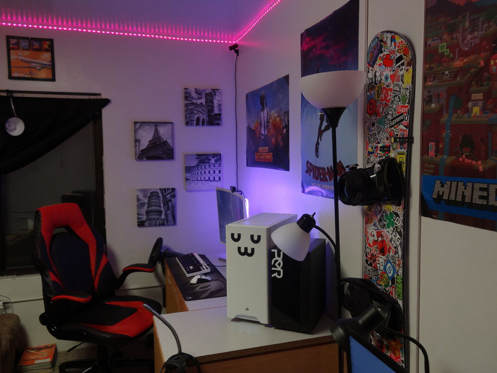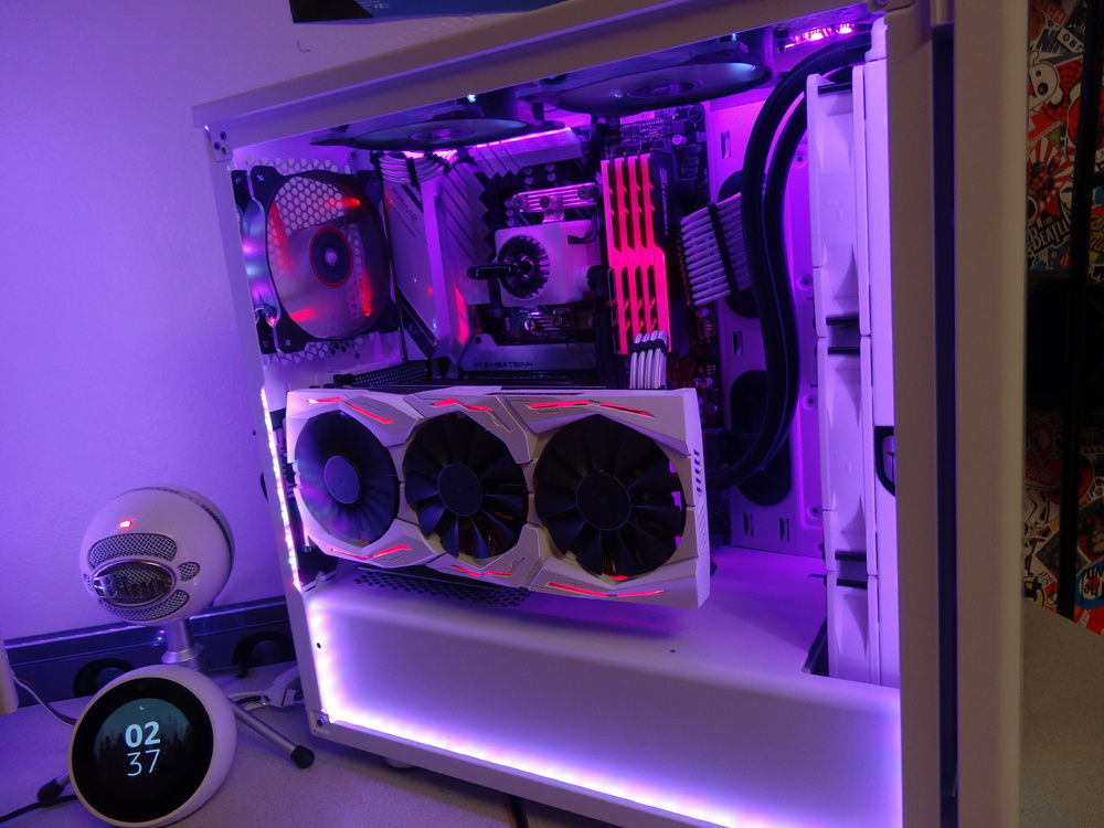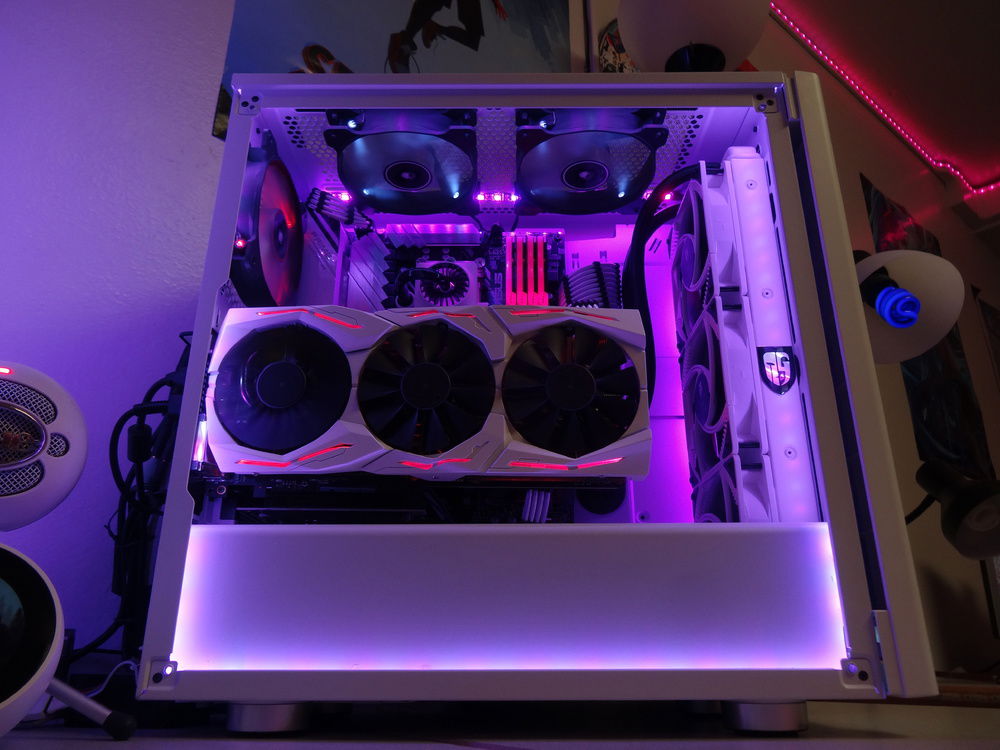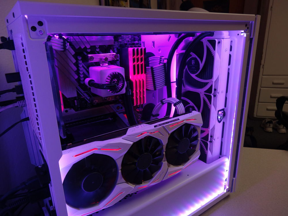 This is technically my first build, although at this point, the only parts that are original to when I first built is are three case fans and a hard drive. I can't afford the best of the best, so instead of spending my time and money making my computer faster and more powerful, I spend time making it look smexy. I have painted my GPU shroud white, and also done a paint mod to my keyboard and mouse. All the lights stay static, and eventually I plan to get every single part either black, white, or RGB capable. So far I have succeeded with that goal with all parts except for three case fans, which are 1x red, and 2x cool white (doesn't match). To get those to follow my color scheme would require some RGB fans (I mean, there are other options but who wants that) and that's gonna take some saving up. The overall goal of this build is to be as clean as possible, and be capable of setting any color I want to on the RGB, and the build look good in it due to the neutral white and black design. Eventually I'll do a custom water cooling loop, but that is far in the future.
