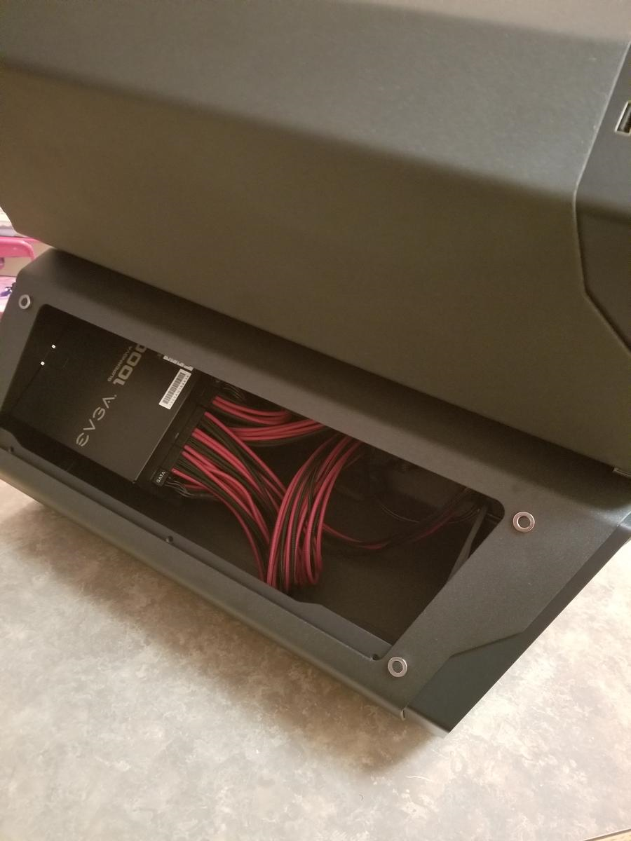 Bought a i9 9900K, Asus RoG Ryuo 240mm OLED RGB AIO CPU cooler, Razer HDK, Razer Nommo Pro Chroma THX speakers, Razer Nari Ultimate Wireless Headphones with Haptics Feedback & Cablemod Pro Blood Red/Black cable set. Relocated the Quadstellaer's temperature probe to the GPU compartment so that it automatically opens the power actuator doors when the 2080ti hits 56C.