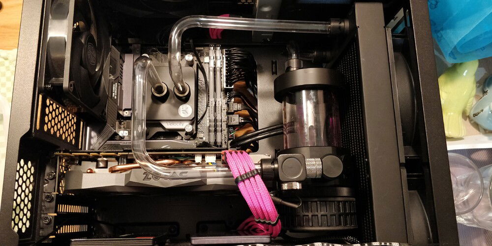 My daily driver for work and casual gaming. Also this was my first try building a custom loop water cooling with hard tubing.