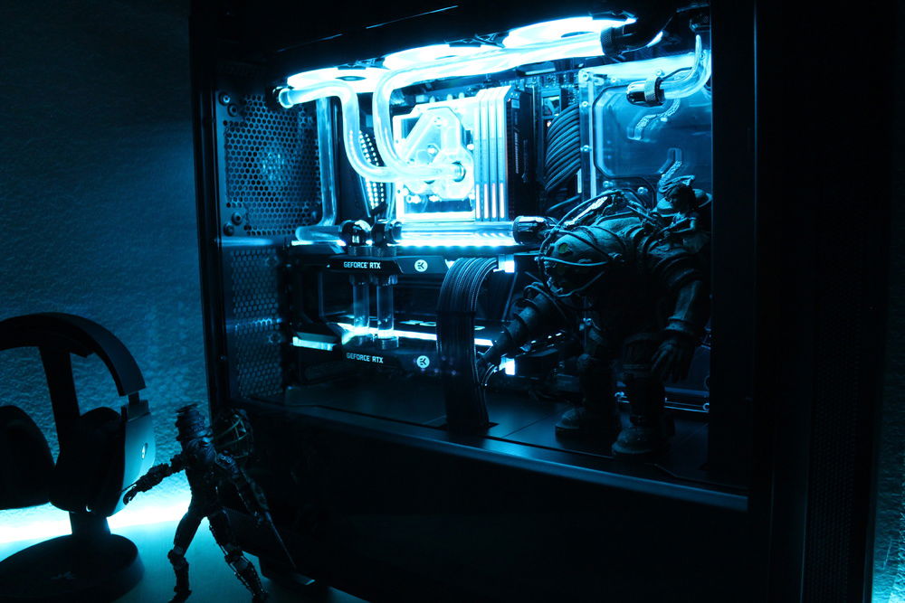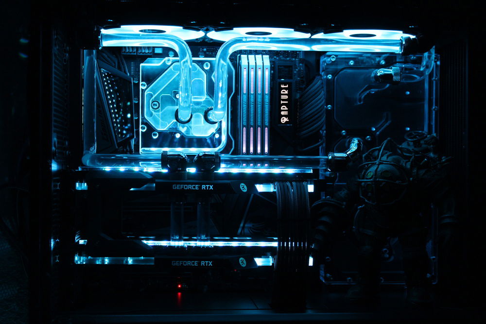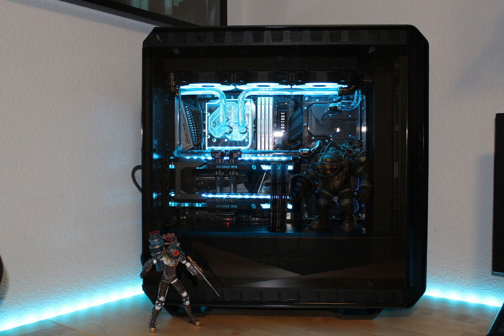 Welcome to Rapture! As you can see I have an affinity for Bioshock... I always have. When I decided to build this PC I knew I did not want a traditional pump/res combo and got the idea in my head to use a waterway. The DBP 900 was big enough for what I wanted to do, but not too big, so that decided the case for me. I had to cut the back of the case a bit to fit the pump through. I also cut away all the vent obstructions from the top and front panels. When it was all put together I realized that I had a sort of "dead spot" in front of the reservoir. It didn't look bad just sort of empty. While staring at it thinking of what I could do in that space I said to myself, in a rather self aggrandizing way, this thing looks awesome under water. And just like that the thought of it being under water and Bioshock were a perfect match. I have never been one to theme a build in this way and honestly never thought I would. But I look at it now and it makes me happy.