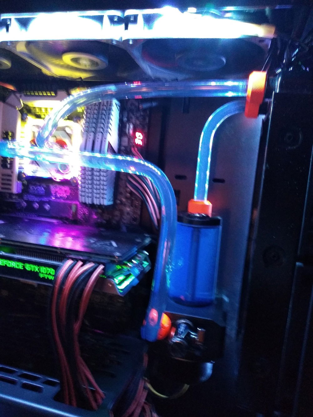 This build has been UPDATED to Custom Water cooling loop, and it is still in the working stages ... my primary photo is now the build at this stage .. Please check out the other photos. thank you and many blessings . Rebuild my first Hard line built, i done awhile back. So far i have just replaced the case removed all the water cooling out of it. Im waiting on a new D5 pump, cause my old one, well lets just say didn't stay at the Rpm i had it at, went from 3 on the dial to 1 . ya not good.. also waiting on new hard line from PrimoChill and new fittings, i still have my old one the PrimoChill UV Orange from my old build, but thought lets go with something else another color, thinking UV green or ???? , i am gonna be adding another Rad to this set up a 360mm for the front and going with my 240 rad on the top.. as for the coolant not sure as to what color im going to go .