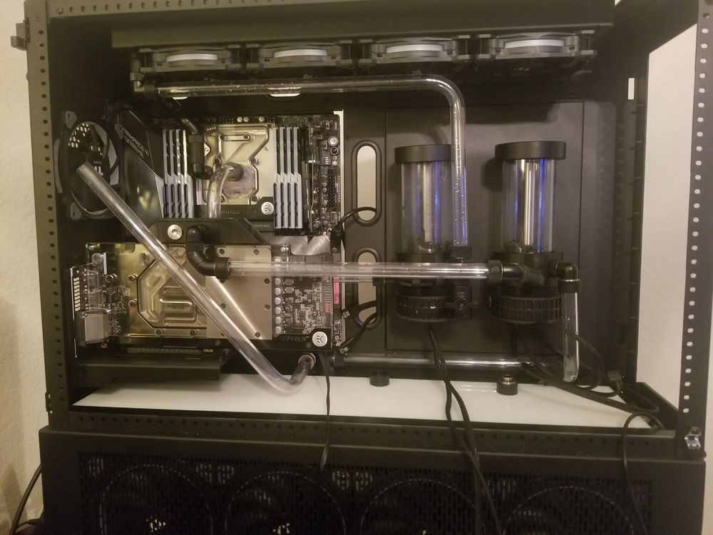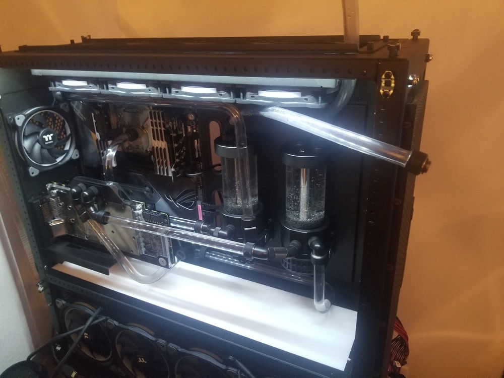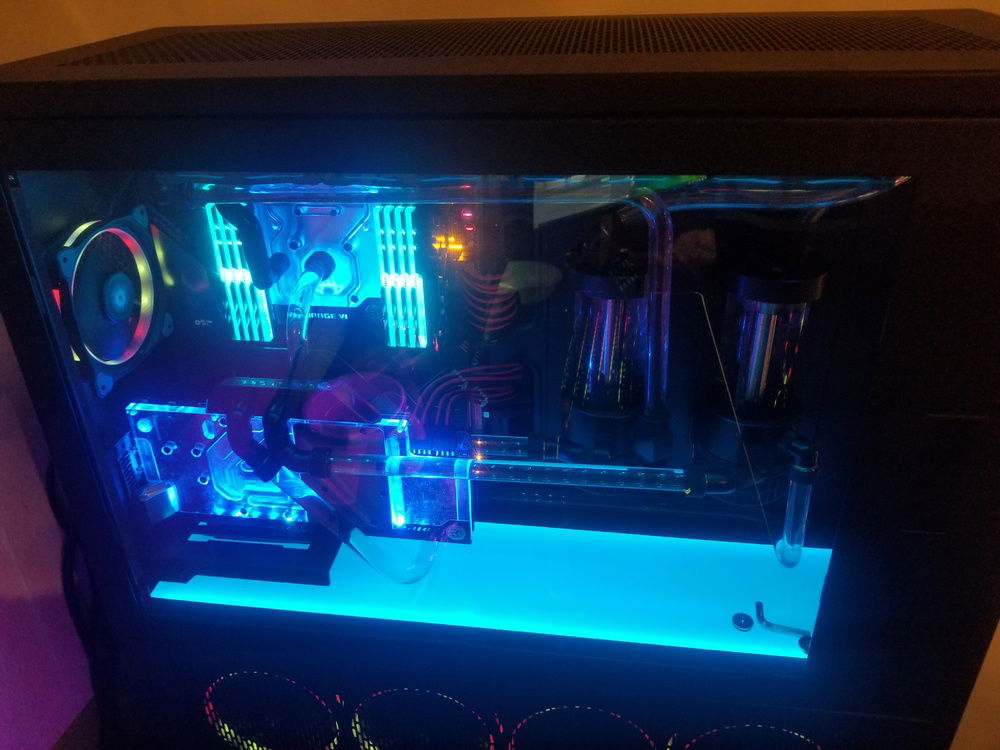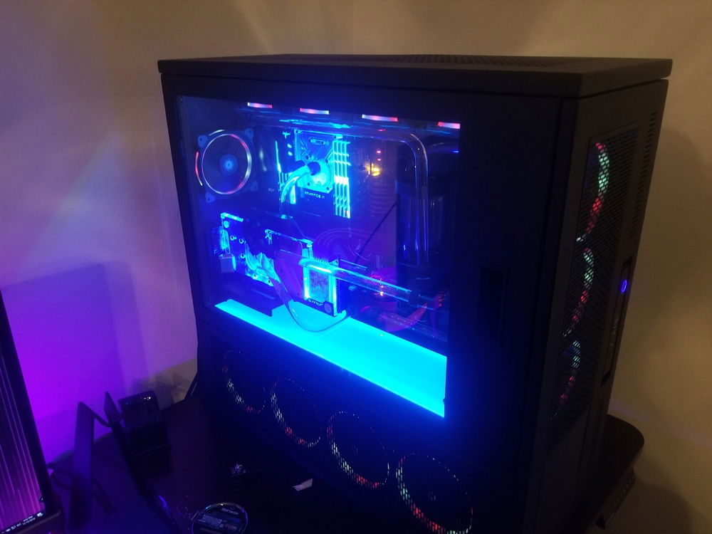 This build was inspired by my time in the us navy as a nuclear power plant operator. The fans are arranged to look like a red and yellow radiation warning sign and the the cpu and gpu are set to a light blue to look like cherenkov radiation, a blue glow that a reactor emits in water.