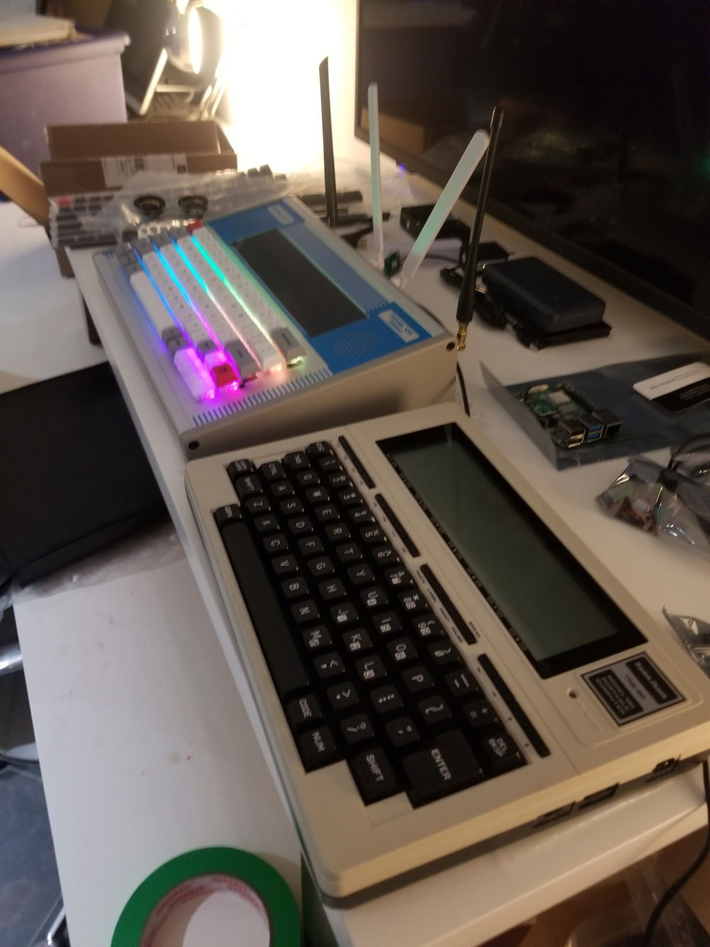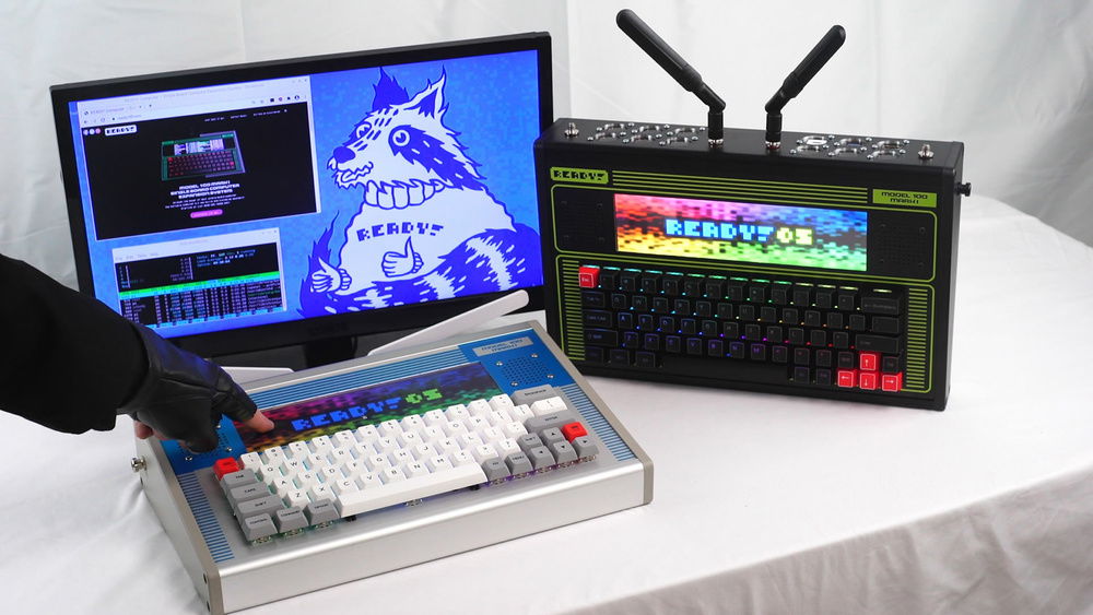 The MODEL 100 is a premium aluminum enclosure expansion system complete with 12 universal panel mounts, a gorgeous “3xVGA” (1920×480) touch screen, amazing RGB LED mechanical keyboard, 4 SMA antenna ports, and a 10W Stereo speaker system.