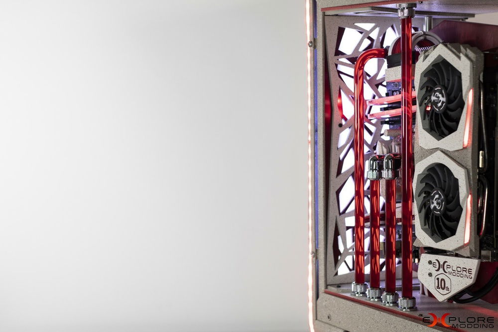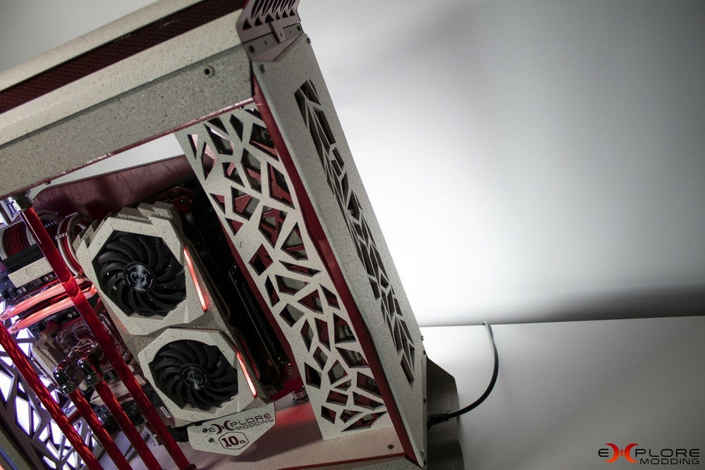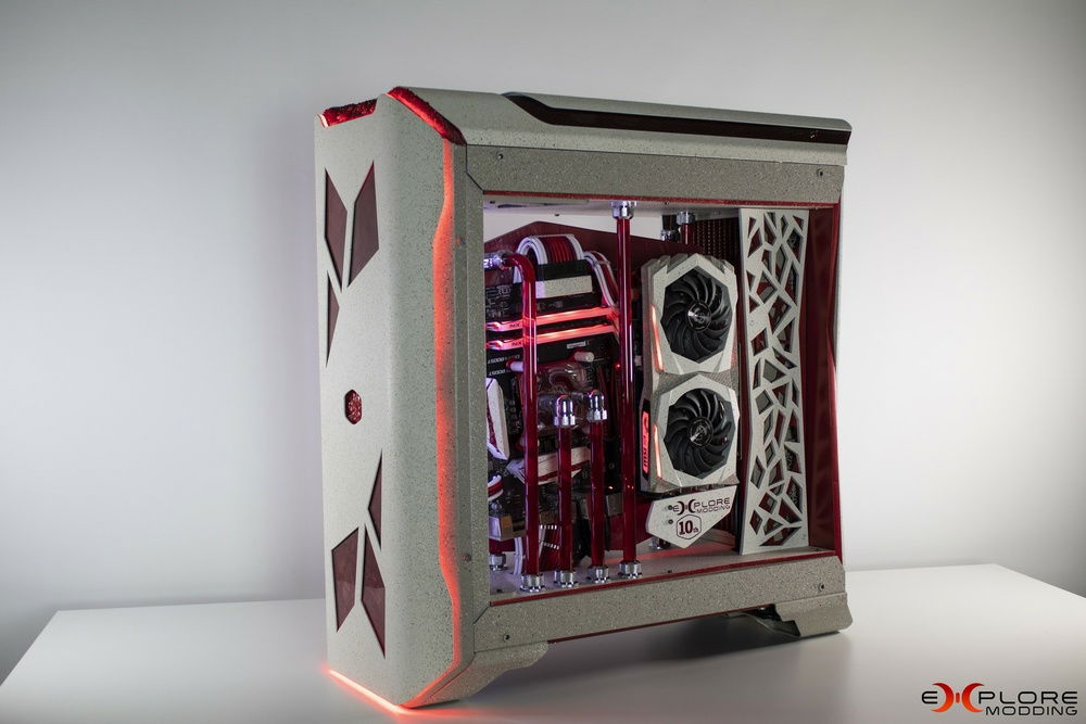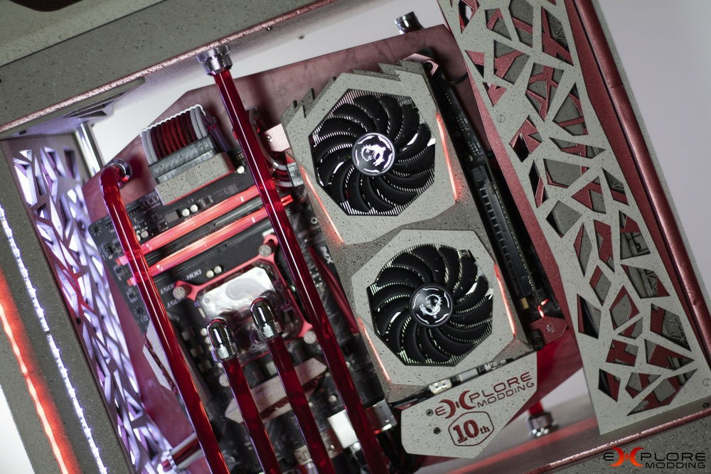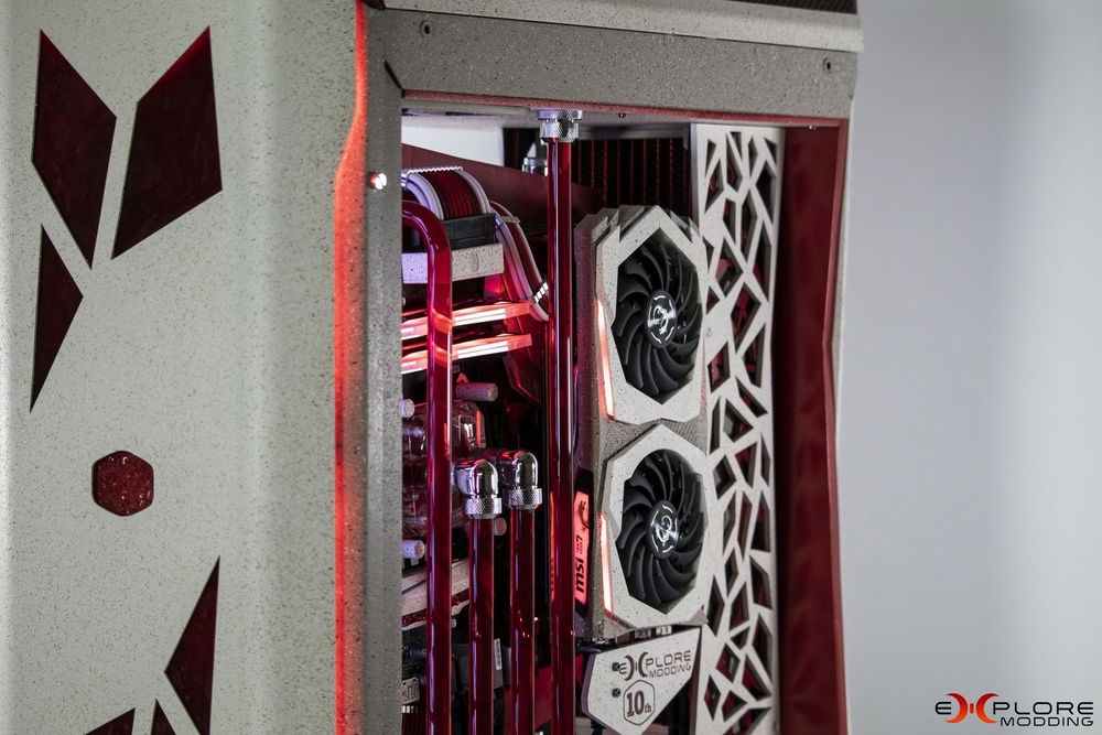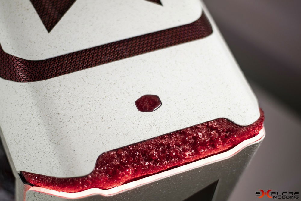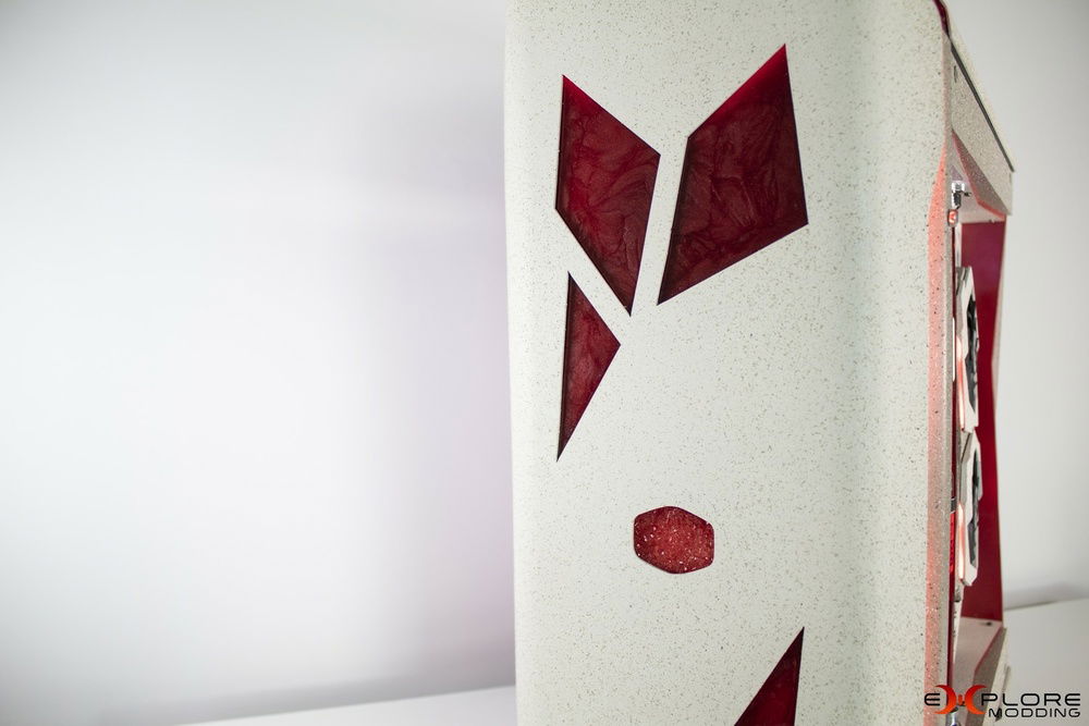 Realgar is a project inspired and designed following the rules of nature. Initially, the goal was to create a big stone monolith with a red geode inside, and I achieved that. In the end, it came out as what I like to call "controlled chaos": the resin texture, the handmade patterns on the panels, the crystals, were all designs that I didn't or couldn't plan exactly, that's why this build is connected to nature, unpredictable. Aside from that, Realgar features modifications for the SL600M that could be implemented in future versions, such as the lit trim on the front panel or the unique cable management sections. To break the naturalistic mood comes the watercooling loop, to which I gave a really modern and shiny look to achieve that contrast between nature and industry. The two main sides of Realgar feature two very different approaches, one being very minimalistic, and one more crowded, to please most eyes in different ways. The floating hardware panel inside is what makes this mod really pop, as I think it really looks like it's suspended in the air and it creates a really pleasant sight when looking at the internals.