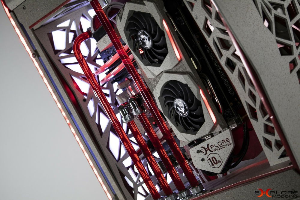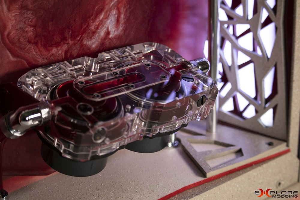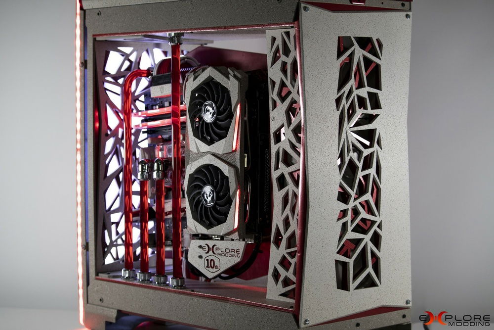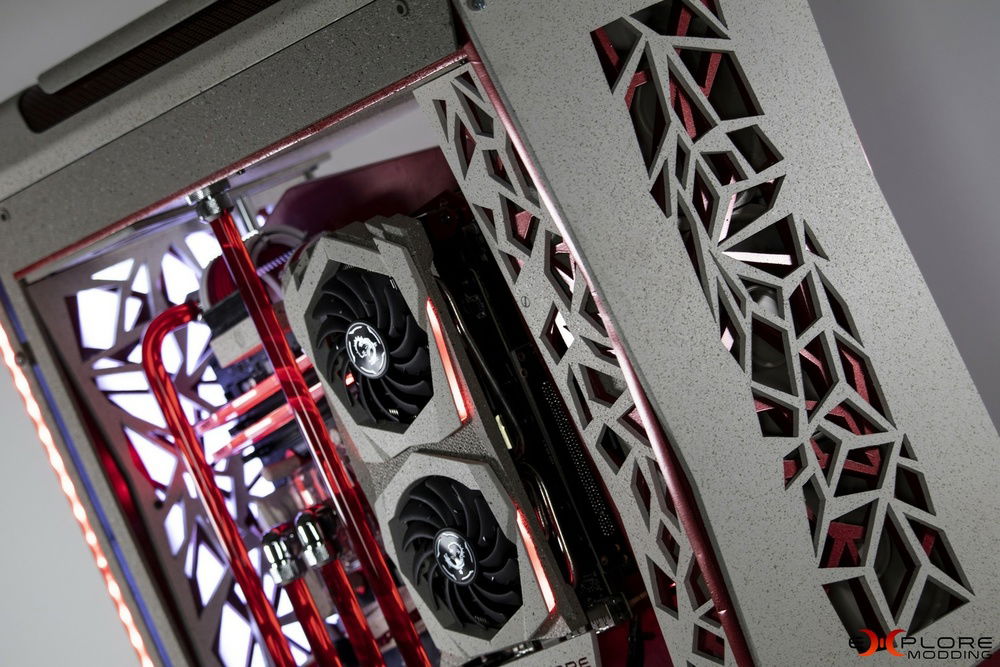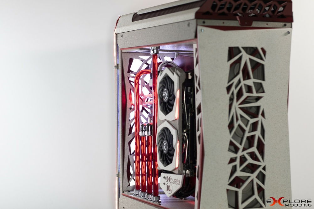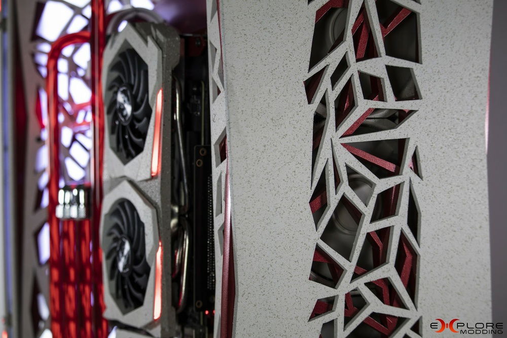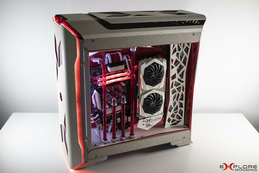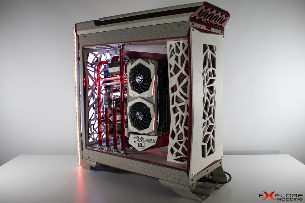 Realgar is a project inspired and designed following the rules of nature. Initially, the goal was to create a big stone monolith with a red geode inside, and I achieved that. In the end, it came out as what I like to call "controlled chaos": the resin texture, the handmade patterns on the panels, the crystals, were all designs that I didn't or couldn't plan exactly, that's why this build is connected to nature, unpredictable. Aside from that, Realgar features modifications for the SL600M that could be implemented in future versions, such as the lit trim on the front panel or the unique cable management sections. To break the naturalistic mood comes the watercooling loop, to which I gave a really modern and shiny look to achieve that contrast between nature and industry. The two main sides of Realgar feature two very different approaches, one being very minimalistic, and one more crowded, to please most eyes in different ways. The floating hardware panel inside is what makes this mod really pop, as I think it really looks like it's suspended in the air and it creates a really pleasant sight when looking at the internals.
