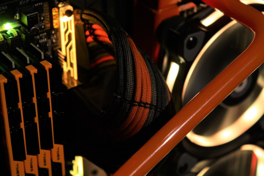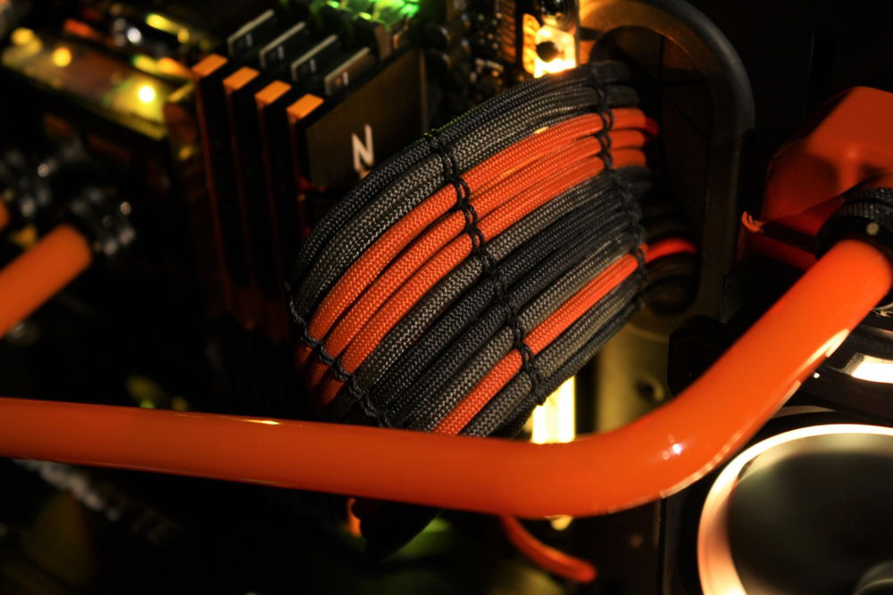 Custom sleeved and cable-laced power, usb, fan headers cables.