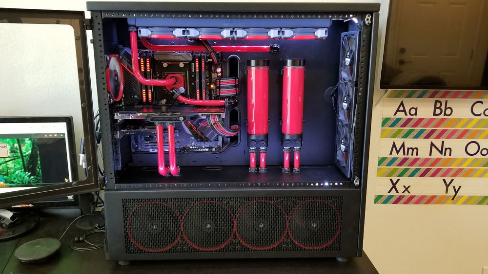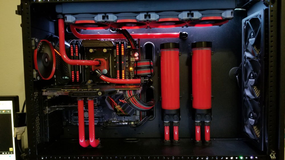 SPECS: *CaseLabs Magnum SMA8 (non-revision) *ASUS ROG Zenith Extreme *AMD Ryzen Threadripper 1950X *EVGA GTX 1080ti FTW3 *Corsair Vengeance RGB 32GB DDR4 3000 *Samsung 960 Pro 512GB *WD Black 5TB *Corsair AX1200i PSU *Custom sleeved cable extensions from Mod-One *Custom Dual Loop with Mayhem's Red Pastel fluid