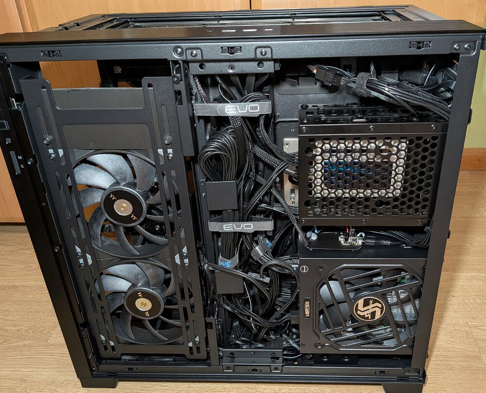 - Top exhaust: 3x Lian Li GA II Trinity Performance + Side ARGB kit