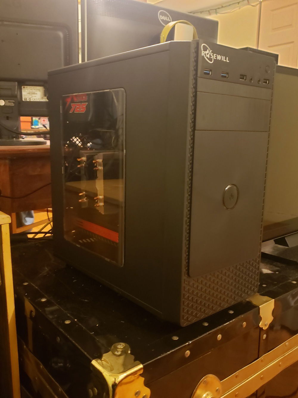 This is a build i made on a really tight budget. i think i paid less then 200$ for everything gpu is an hd 5970. the cpu cooler is some random ali express special, not what ever i put in the description i had to cut a hole on the bottem of the cas and put a 80mm fan so the gpu didnt overheat.