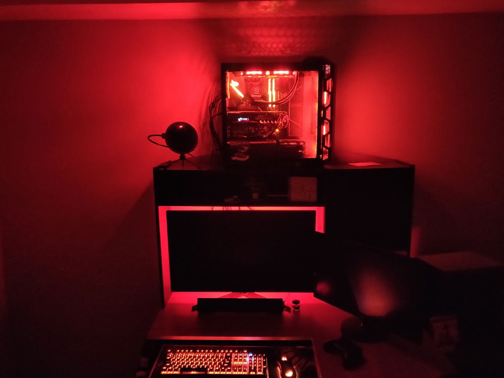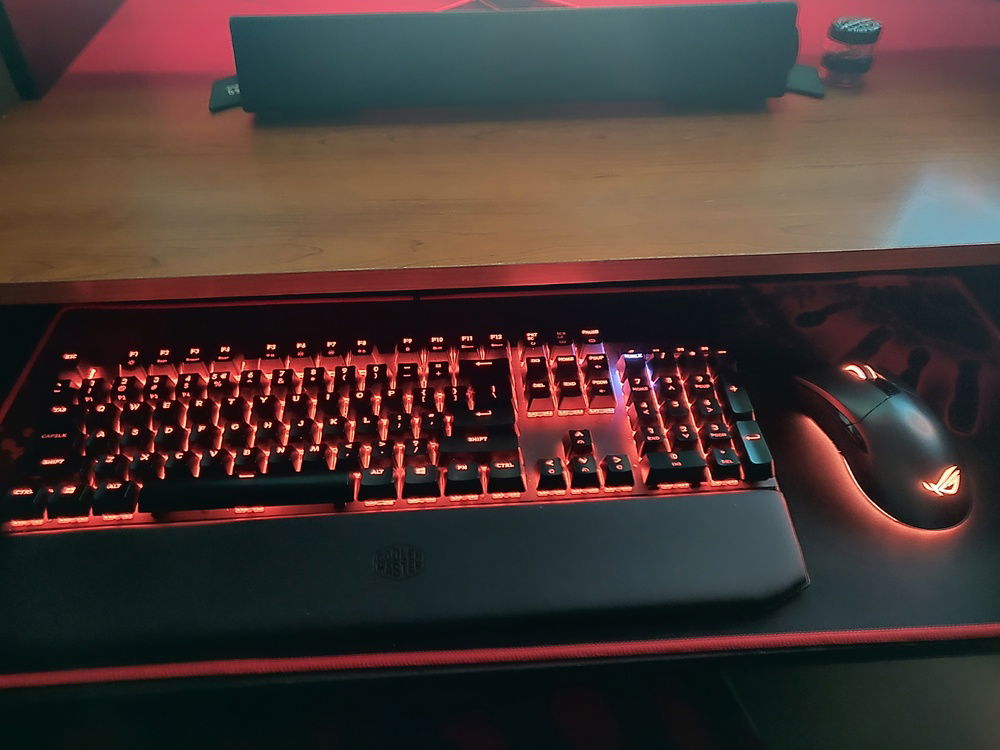 Phone camera really doesn't pick up on the orange of motherboard, mouse, keyboard, and RAM. They're all the orange from Ryzen packaging.
