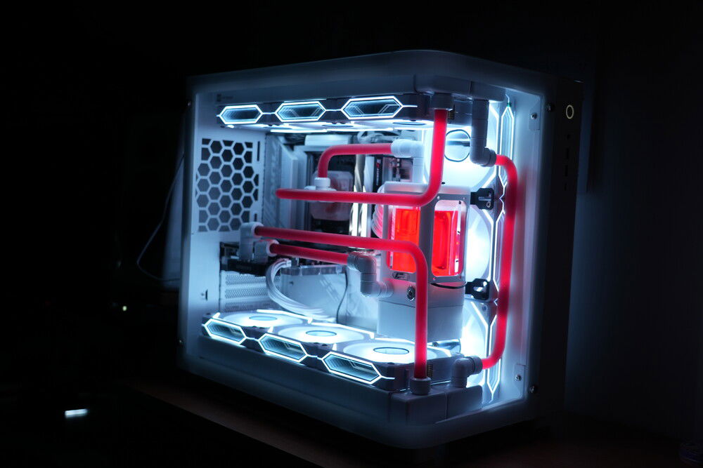 I commissioned this mid-range gaming PC from my 14-year-old friend. It was his first custom loop PC.