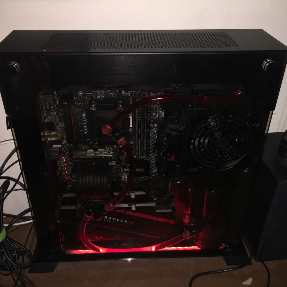 Testing out different types of PCI-E cables. Temporary crossfire solution until the custom EKWB kit came.