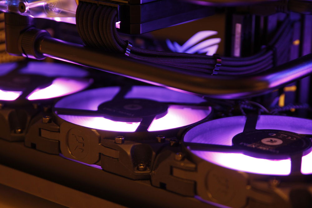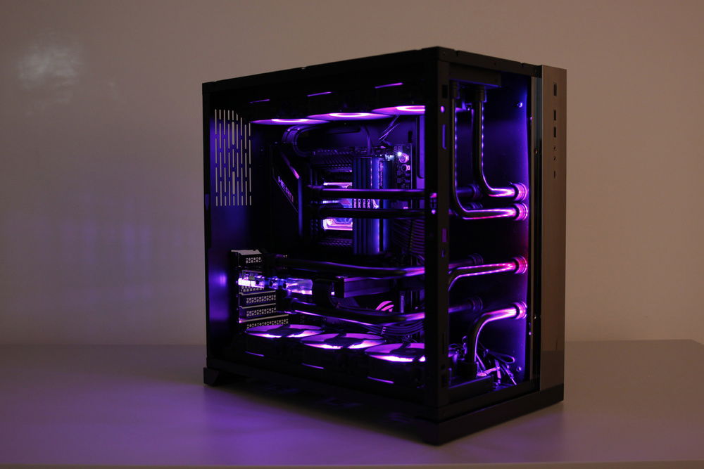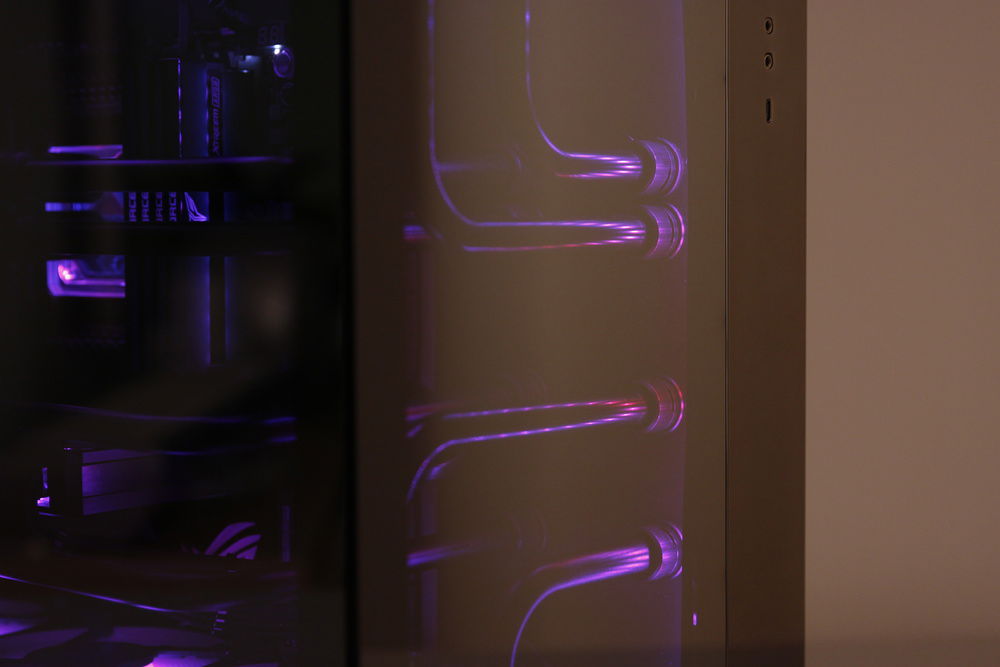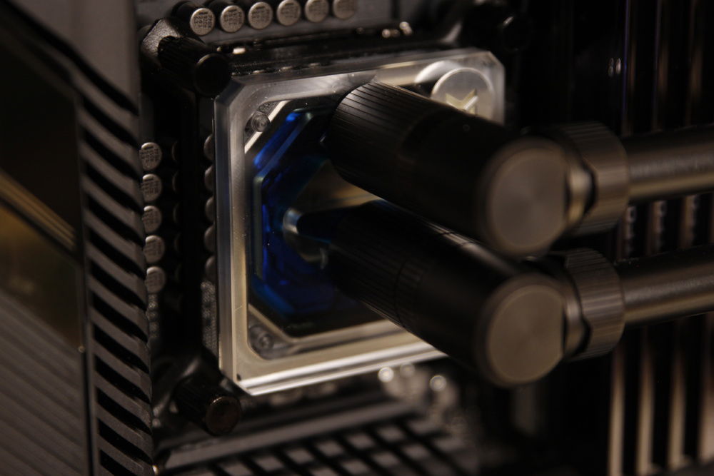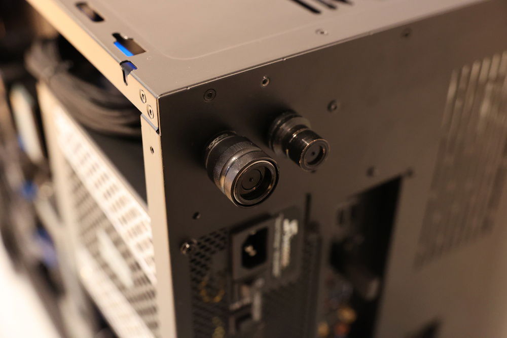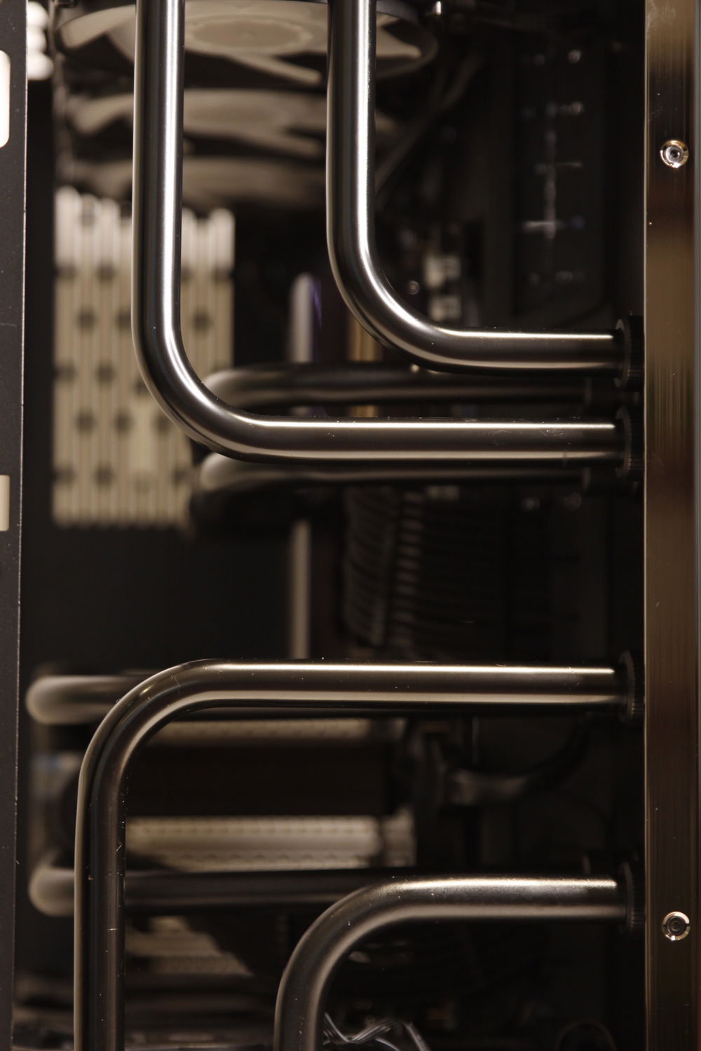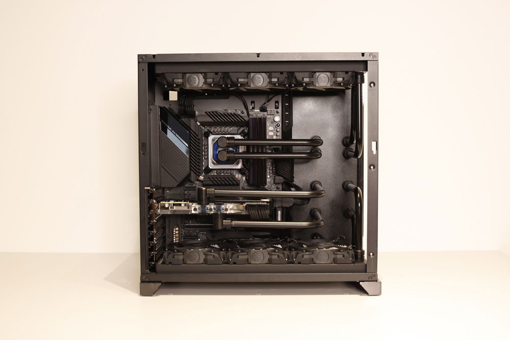 Custom water-cooled gaming rig. Detacheable additional external watercooling with MO-RA 3 420 radiator. With MO-RA attached, water temp stays below 30° under load and with fans running at minimum RPM.