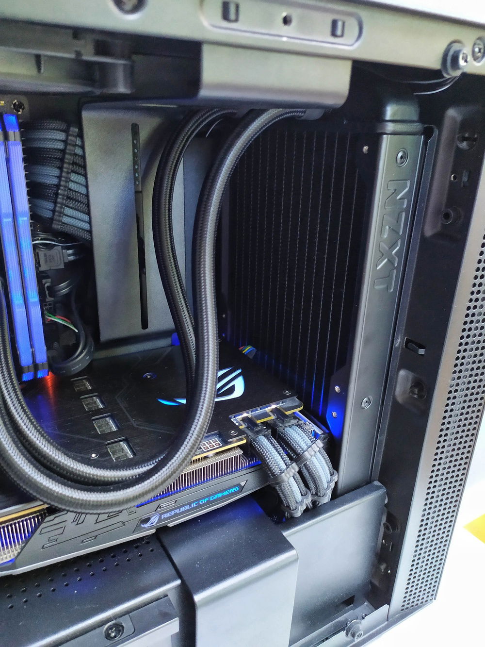 The NZXT H200i isn't compatible with 280mm AIO's so I needed a bit of improvisation to fit it into the case. The radiator just fit in between my GPU and the end of the case. The included fans extended past the front fan grill so I used longer screws to attach it to the front of the case but because if this, the mesh cover wouldn't attach to the fan grill. I purchased 140mm mesh fan covers from Amazon and fit these over the fans and it works really well! Cooling is great, CPU idle is 26-35°c and under load is 54-68°c. GPU temps are 35-40°c idle and 66-72°c under load.