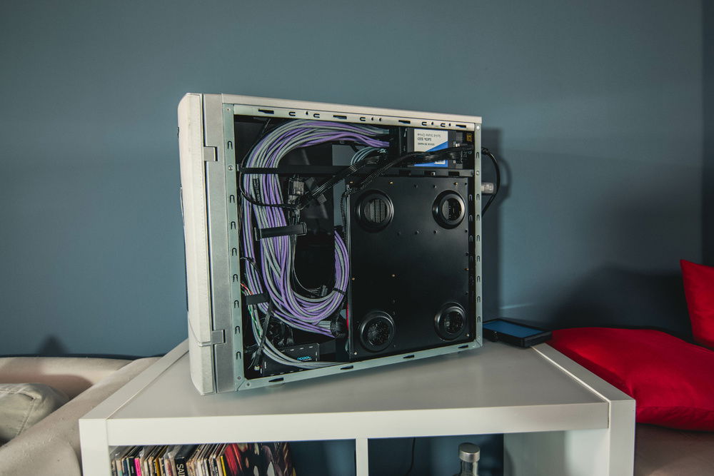 Removed internals and drilled out the rivets holding the hard drive cage as well as the 3.5 and 5.25 drive holders.