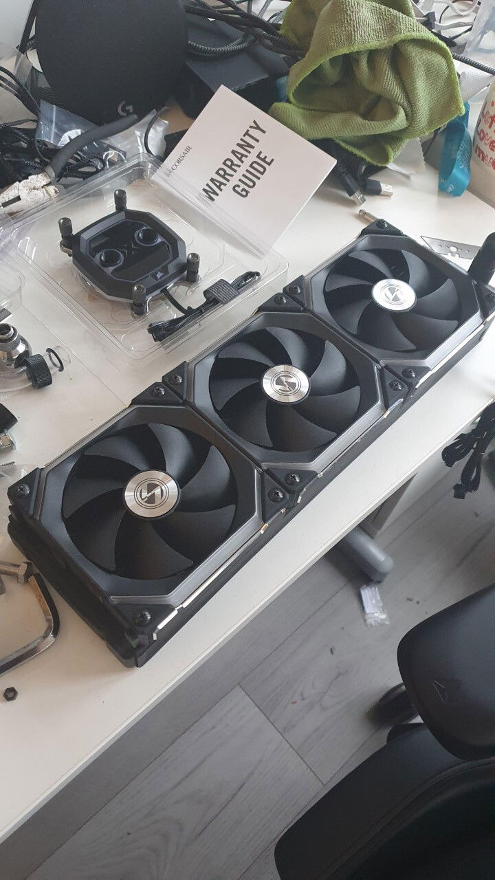 Upgrades were: ROG Crosshair VIII Formula x570, 32gb Corsair Dominator 3600mhz (CL14), Corsair XC5 cpu block, x9 lian li static pressure fans (push/pull front and 3 up top), Coolermaster 4.0 riser cable, custom sleeved psu cables, extended EK res with multiport top and mixed up custom coolant colour (turns purple, blue, pink depending on light hitting it).