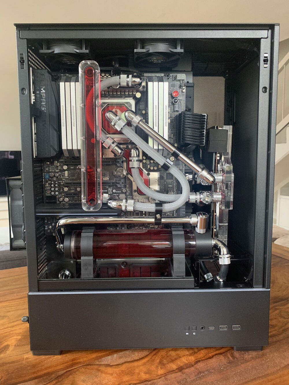 It was pretty fun to build in Lian Li´s SUP01 ... just a little challenging to make a reasonable loop and make it look good. But that´s what makes watercooling interesting. It´s more than throwing parts together. Watertemp is ~ 10 c over ambient after 30 minutes in Timespy with fans running max. 1400 rpm. For a little "blingbling" I added two Lightstrips controlled by a Corsair Node Pro.