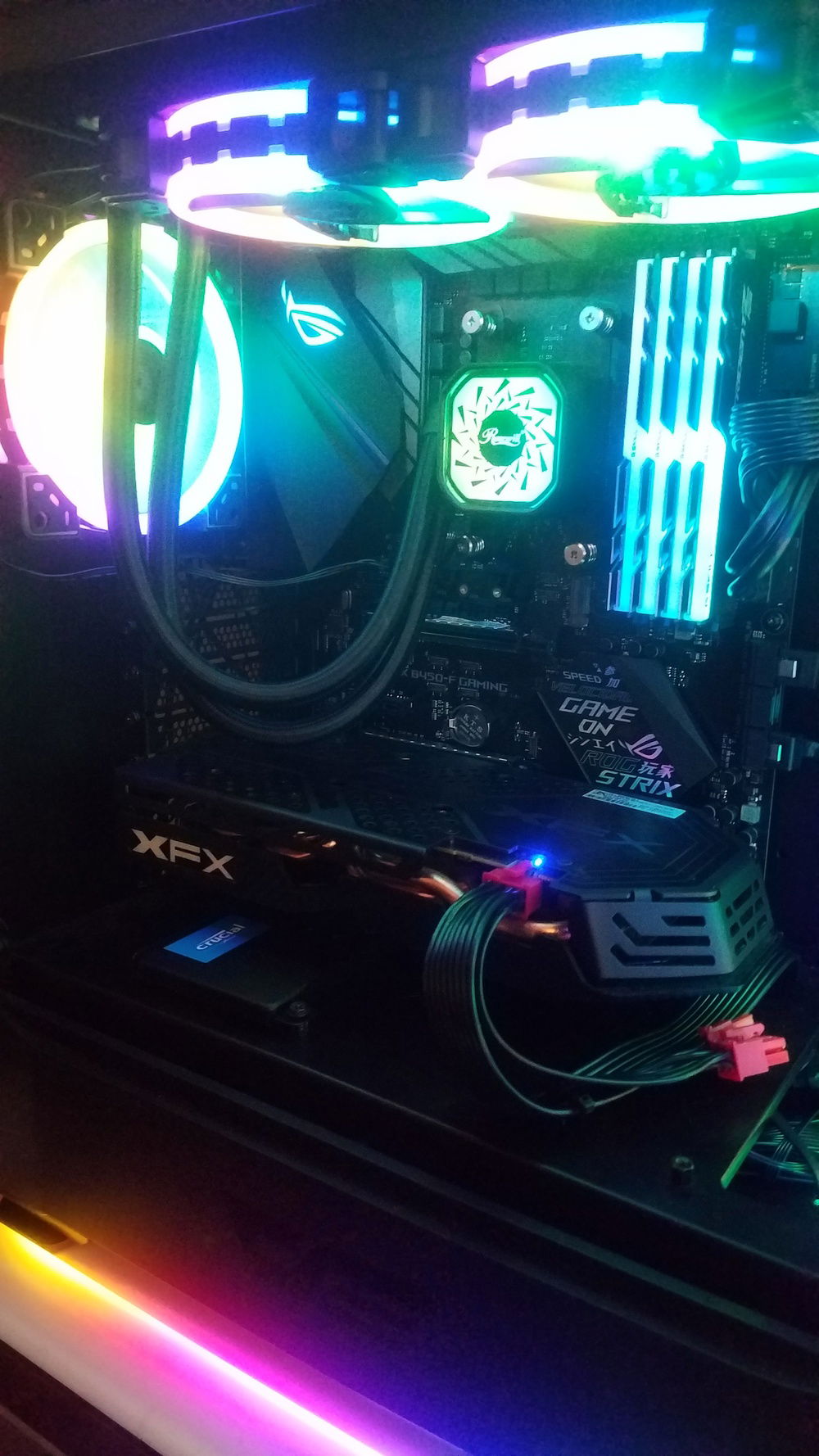 This is the PC I made for my lovely fiance, TheeBustyDragon. She uses it mainly to stream and play Overwatch. Some would say it's overkill for that, but I think it's beautiful. She wanted a lot of RGB, and she definitely got it. Going to be updating the GFX Card with an RGB model soon as well.
