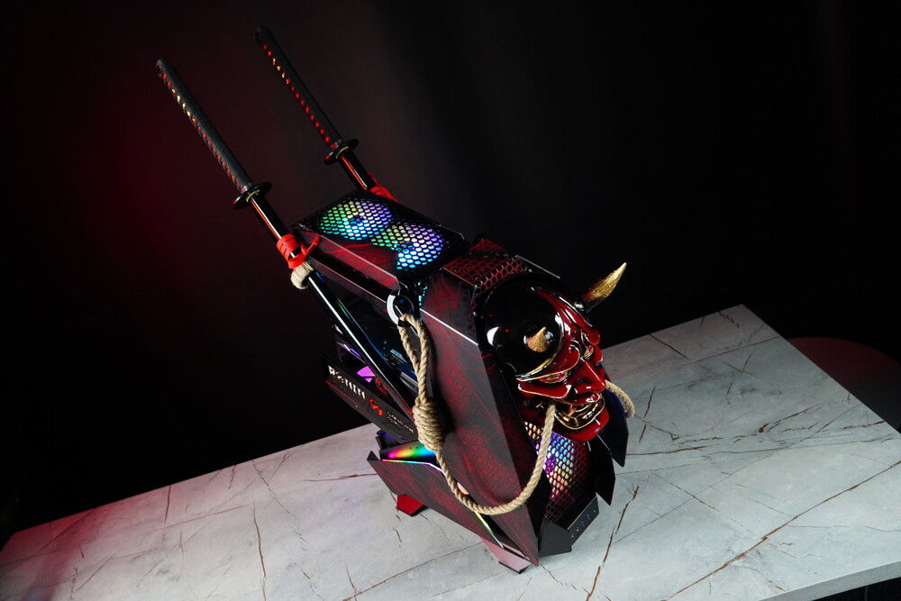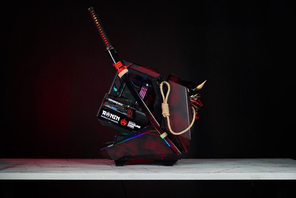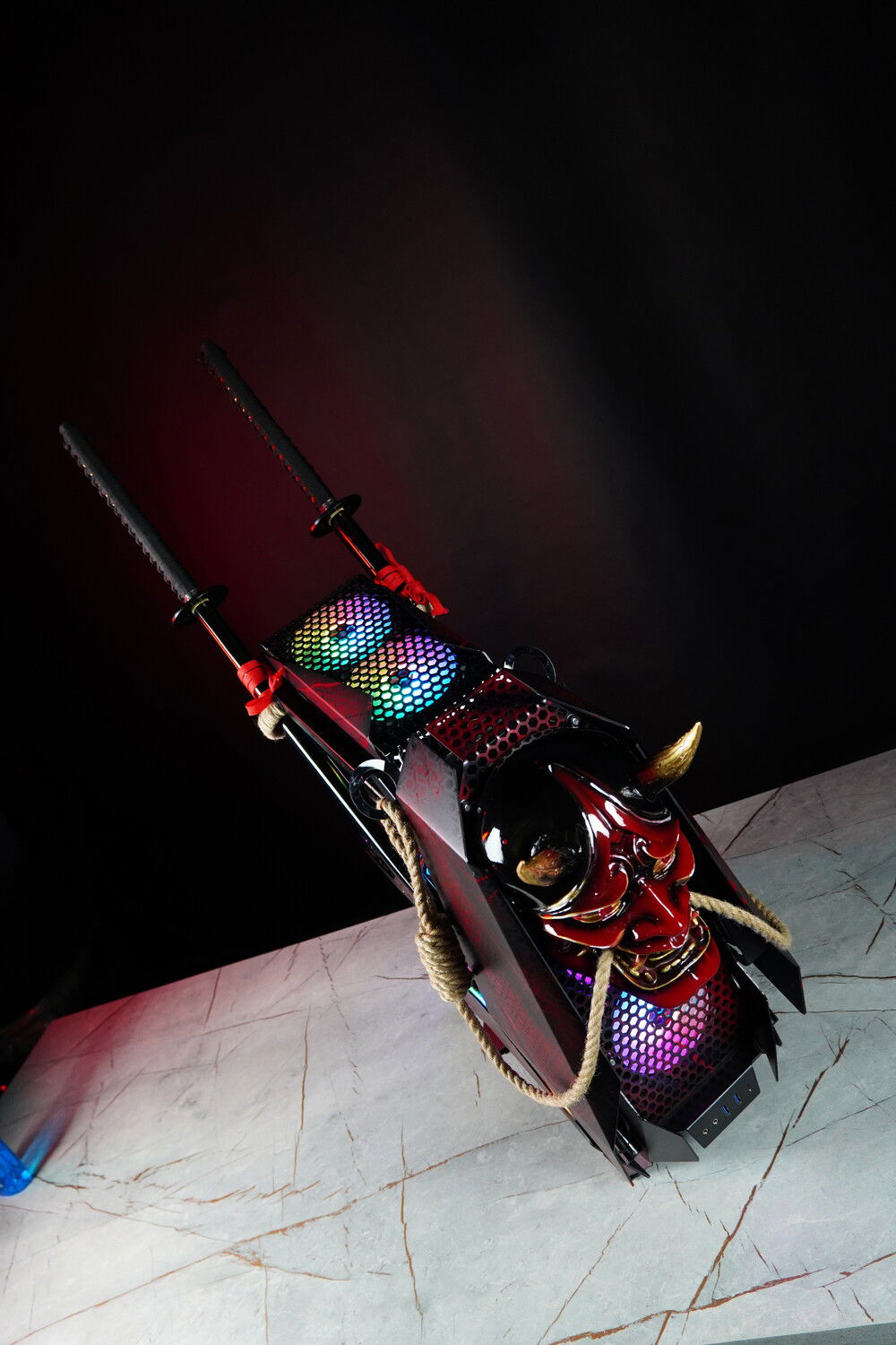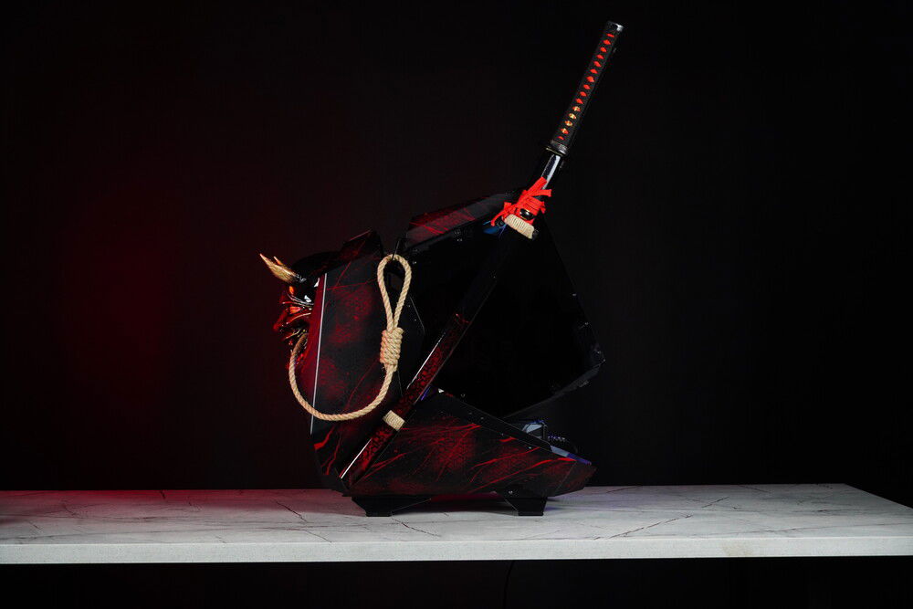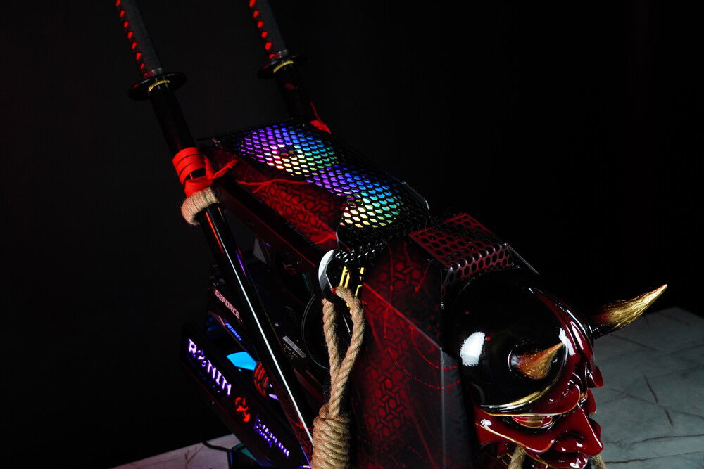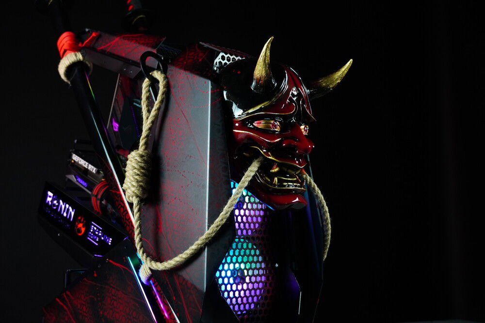 The project was planned half a year ago. We were assembling a computer center in the style of a samurai. We thought for a long time how to surprise the visitors of this center, and we came up with the idea to make an exclusive PC in the Ronin Style. At first we really wanted to add branches of real sakura to the PC, then we found katanas and a mask, and decided that this would be enough, but it remained to figure out how to fix it all. The issue with fastenings disappeared, after we came up with the idea of making loops from a rope rope, we added metal rings and a rope to create a rigid fastening of the katana sheath. when everything was assembled in a draft version, we were already very surprised, but the next big problem arose, the style in which we needed to do it all, at first we thought to paste over everything with a film, but since the PC will stand in the center, we immediately postponed, and decided to turn to a professional artist, who covered the body, katana sheath, mask, motherboard, hand-painted. Yes, the whole PC was hand-painted by the artist, after that, when we reassembled everything, we were amazed that the effect turned out to be so powerful that we ourselves did not expect that we created it))