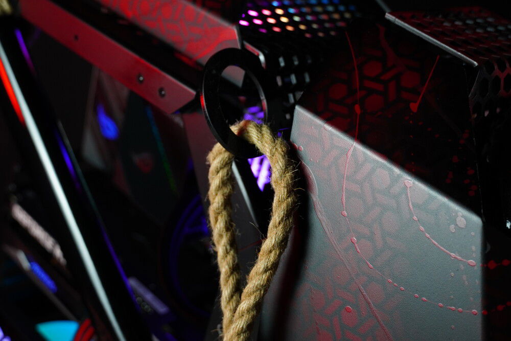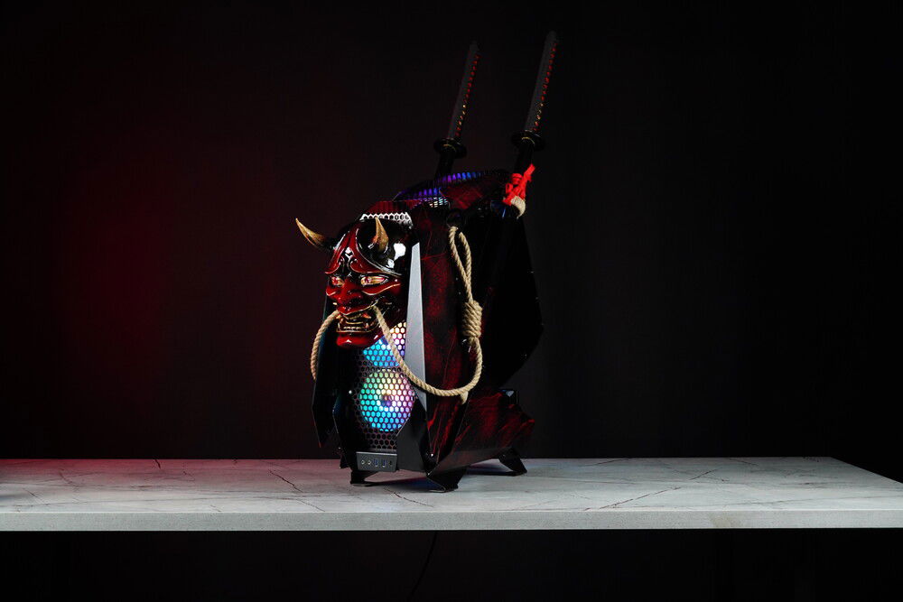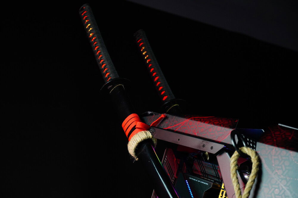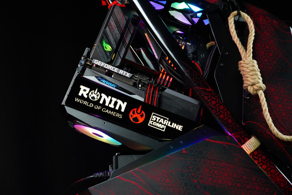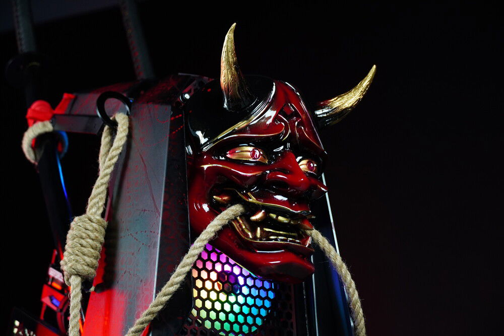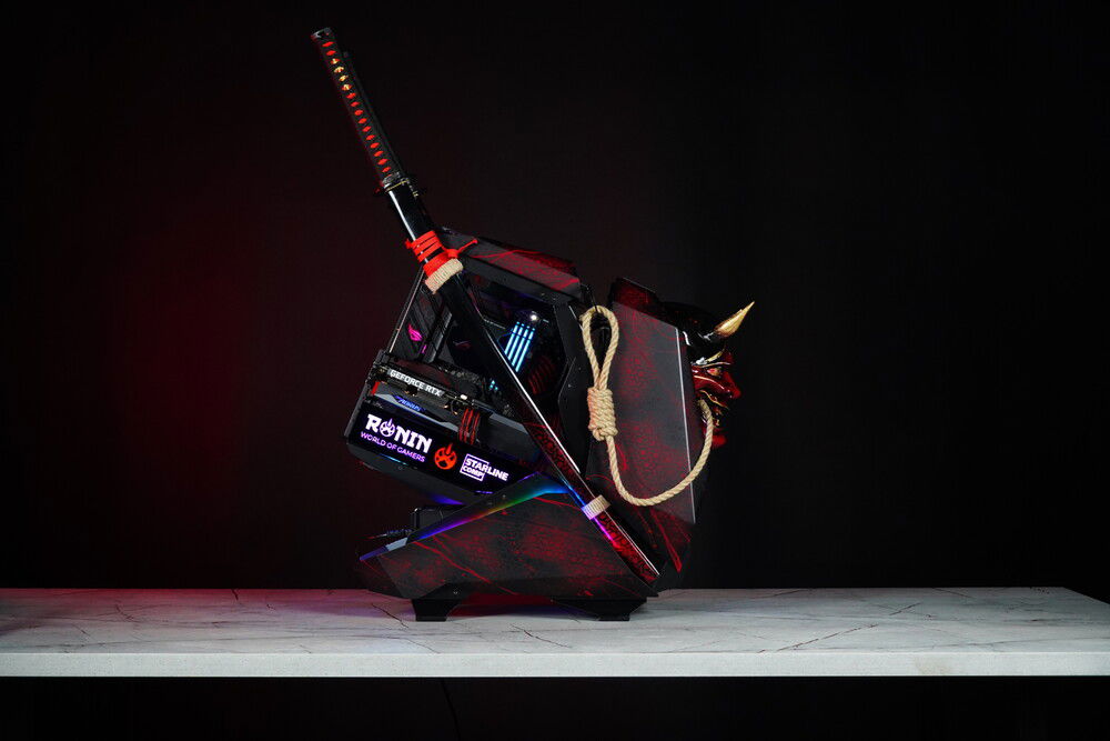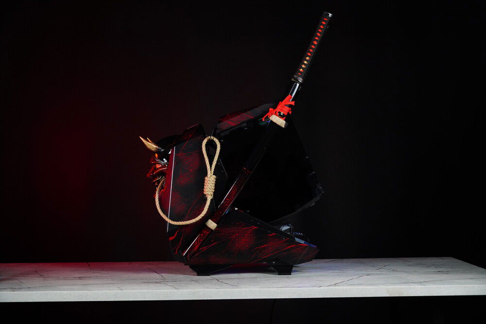 The project was planned half a year ago. We were assembling a computer center in the style of a samurai. We thought for a long time how to surprise the visitors of this center, and we came up with the idea to make an exclusive PC in the Ronin Style. At first we really wanted to add branches of real sakura to the PC, then we found katanas and a mask, and decided that this would be enough, but it remained to figure out how to fix it all. The issue with fastenings disappeared, after we came up with the idea of making loops from a rope rope, we added metal rings and a rope to create a rigid fastening of the katana sheath. when everything was assembled in a draft version, we were already very surprised, but the next big problem arose, the style in which we needed to do it all, at first we thought to paste over everything with a film, but since the PC will stand in the center, we immediately postponed, and decided to turn to a professional artist, who covered the body, katana sheath, mask, motherboard, hand-painted. Yes, the whole PC was hand-painted by the artist, after that, when we reassembled everything, we were amazed that the effect turned out to be so powerful that we ourselves did not expect that we created it))