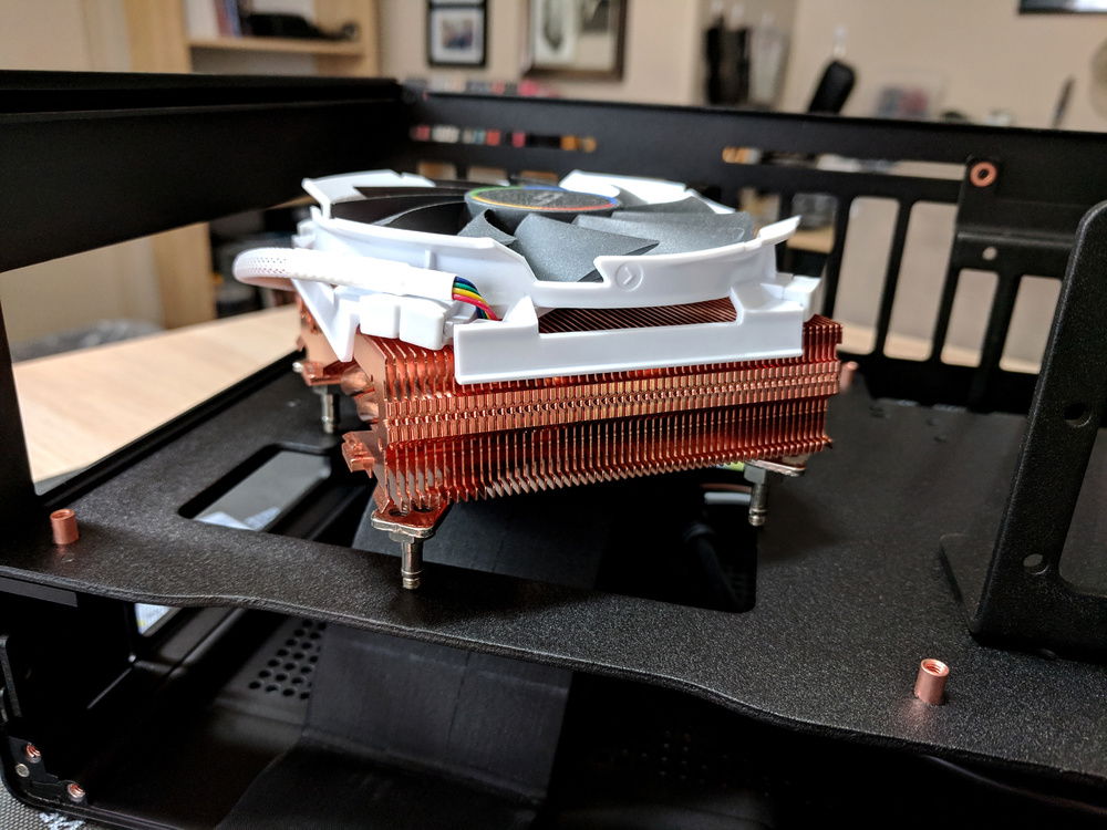 i5 8600K since it wouldn't be terrible at the productivity work I do on my main rig, all while being able to be cooled by a smaller air cooler. I put it in an