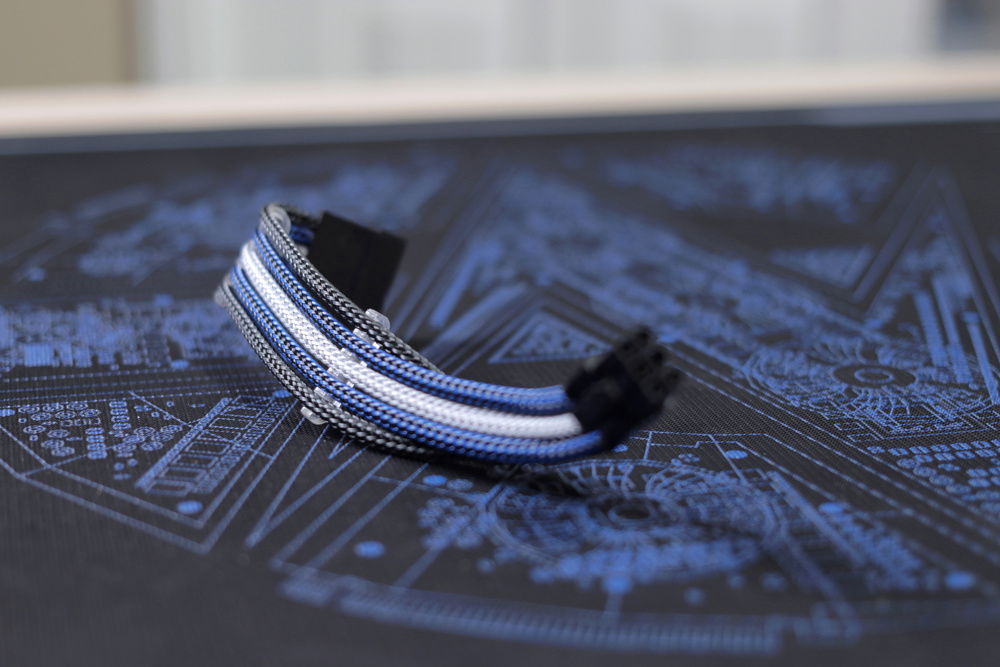 MDPC-X sleeve, save for the SATA power cable that I forgot to order and the second PCIe cable that I had to make for a GPU upgrade. The colors used are Carbon BTI, B-Magic and White Carbon.