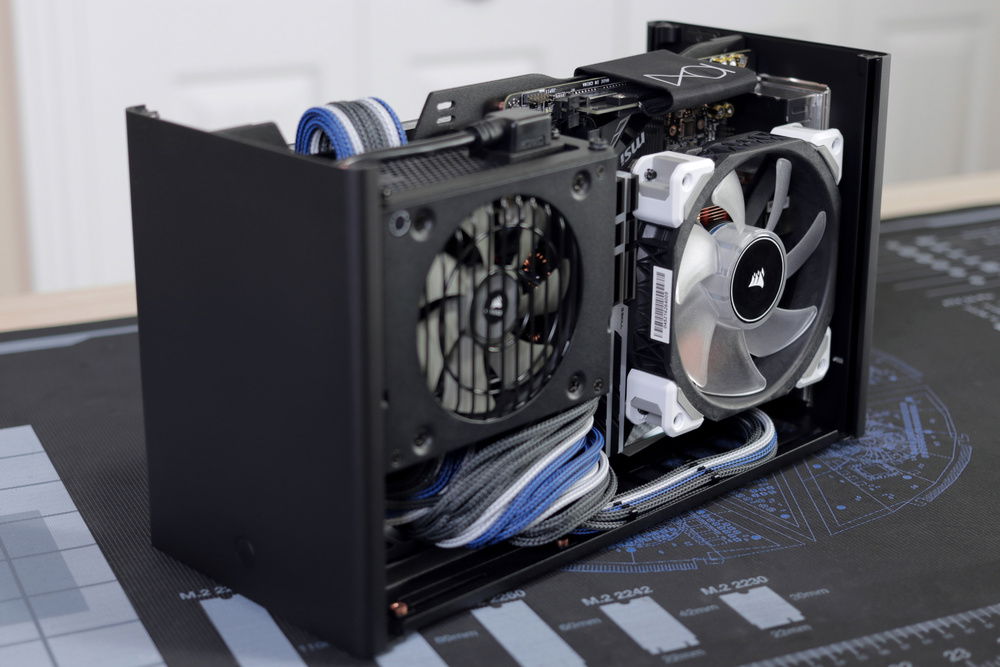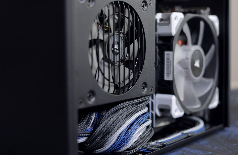 Corsair SF600. The previous build had the SF450, but I wanted to make sure I had proper headroom in case I decided to overclock. The power supply cables were made by