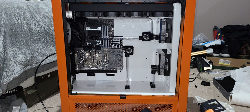 All EKWB quantum fittings,connectors,flow meters,drain valves,FLT 120 DDC pump reservoir x2,EK loop Shifted vertical GPU mount
