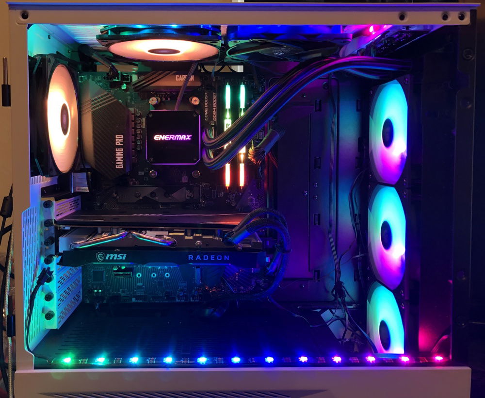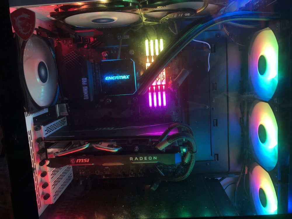 my first build, will be updating as i go along. i started with a gigabyte b450 board and powercolor radeon rx 590 red devil graphic card. side panel will get laser etched with Ryzen from the ashes and a msi dragon etched with it. plus new cpu update soon as well as full ekwb custom loop will be done. Changes coming will be buying a msi x570 motherboard, changing ram, custom liquid cooling, and adding at least 1 10 tb hard drive, then will update pictures with the set up and laser engraving done