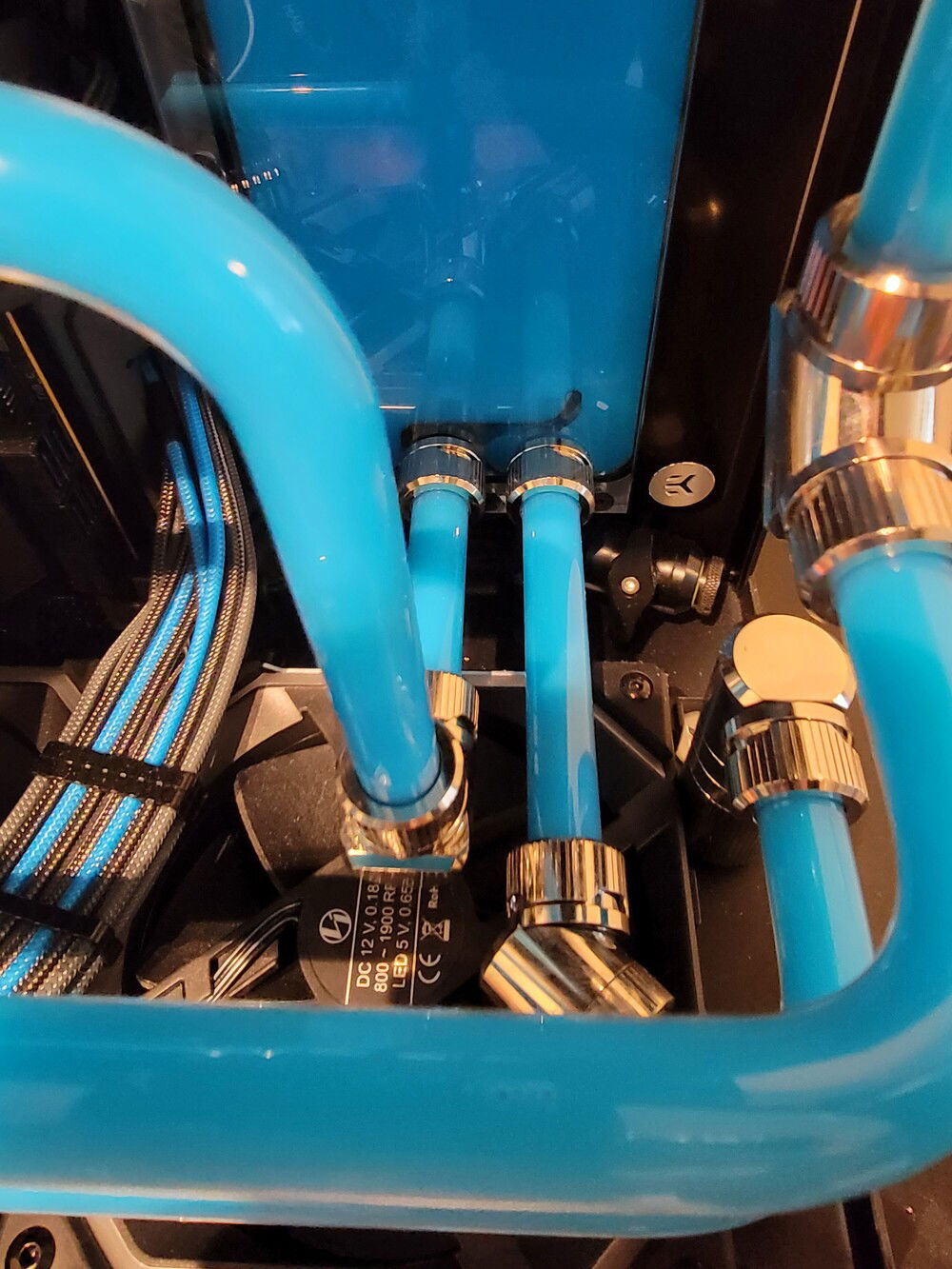 Naming is inspired by the overall theme of the build with all nickel fittings, nickel GPU backplate etc. Fluid is EK Solid Blue Azure
