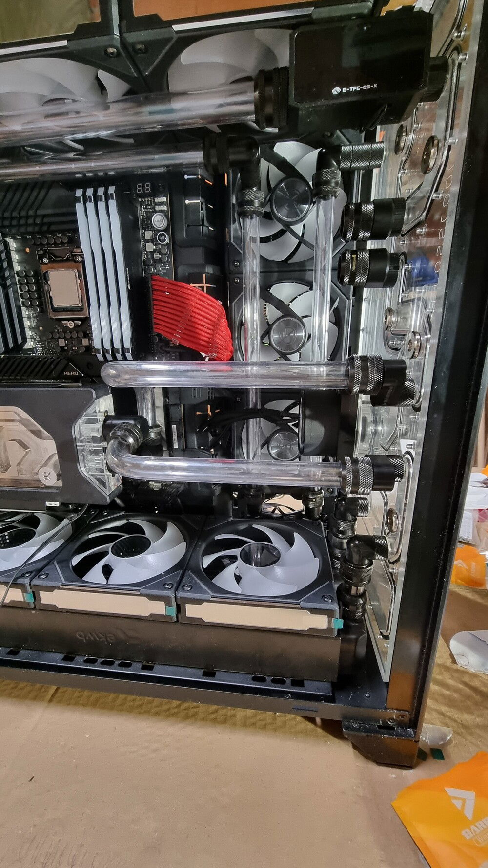 Update : unfortunalty experienced leaks with the bottom rad visible in build pictures. Removed it and keep going with two. Will be updated for next build update.