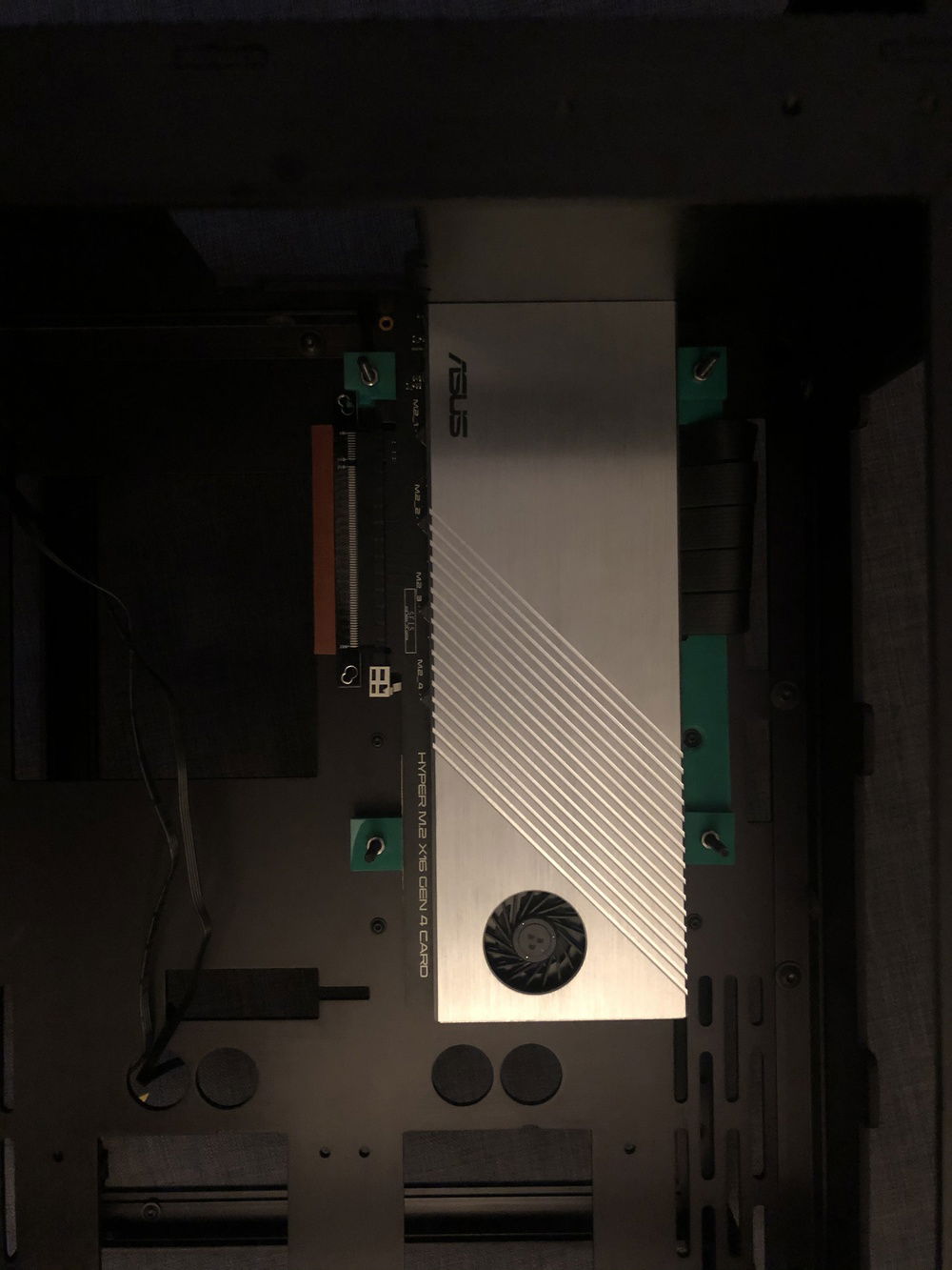 NVME raid card Gen 4 at rear due to GPU being vertical mount.