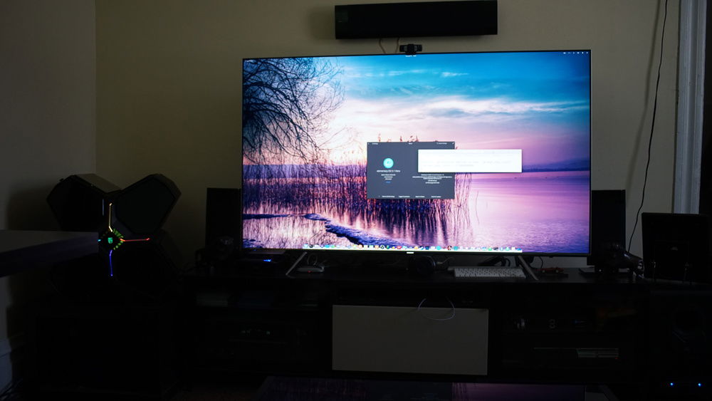 Meet Scar 2.0 an attention grabbing but elegant Zen 2 GPU/VFIO passthrough full entertainment centre (movies, TV, games, music, audiobooks, etc) and overflow AI/ML and compute simulation rig. It sits alongside side an Onkyo TX-NR656 AV receiver configured for 7.2 surround sound (KEF Cube Bookshelf Subwoofer, JBL SP-150 Subwoofer, 1xKlipsch G-28 Flat Panel Speaker, 2xKlipsch G-16 Flat Panel Speaker, and 4xKlipsch G-12 Flat Panel Speaker), and Samsung UN65KS8000 4K UHD QLED TV. While Scar 2.0 is all about audio visual immersion at 4K, the system also doubles as a compute and simulation workload overflow workstation when I need to run multiple AI/ML simulations. It is also used for some quick video editing for family and friends.