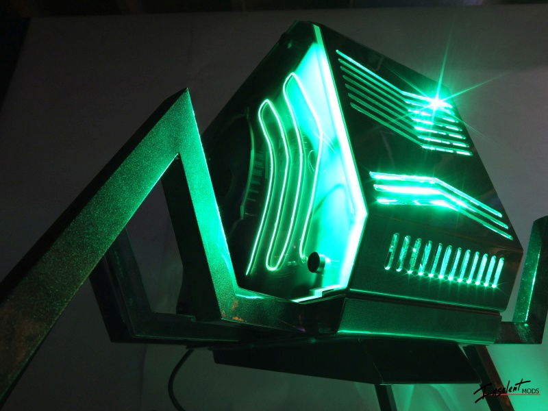 Inspired by the book Robopocalypse by Daniel H. Wilson. Think robot apocalypse scout robot. A couple of things that aren't totally apparent without the build log are the chameleon purple/green paint and a custom resin side panel with embedded EL wire.