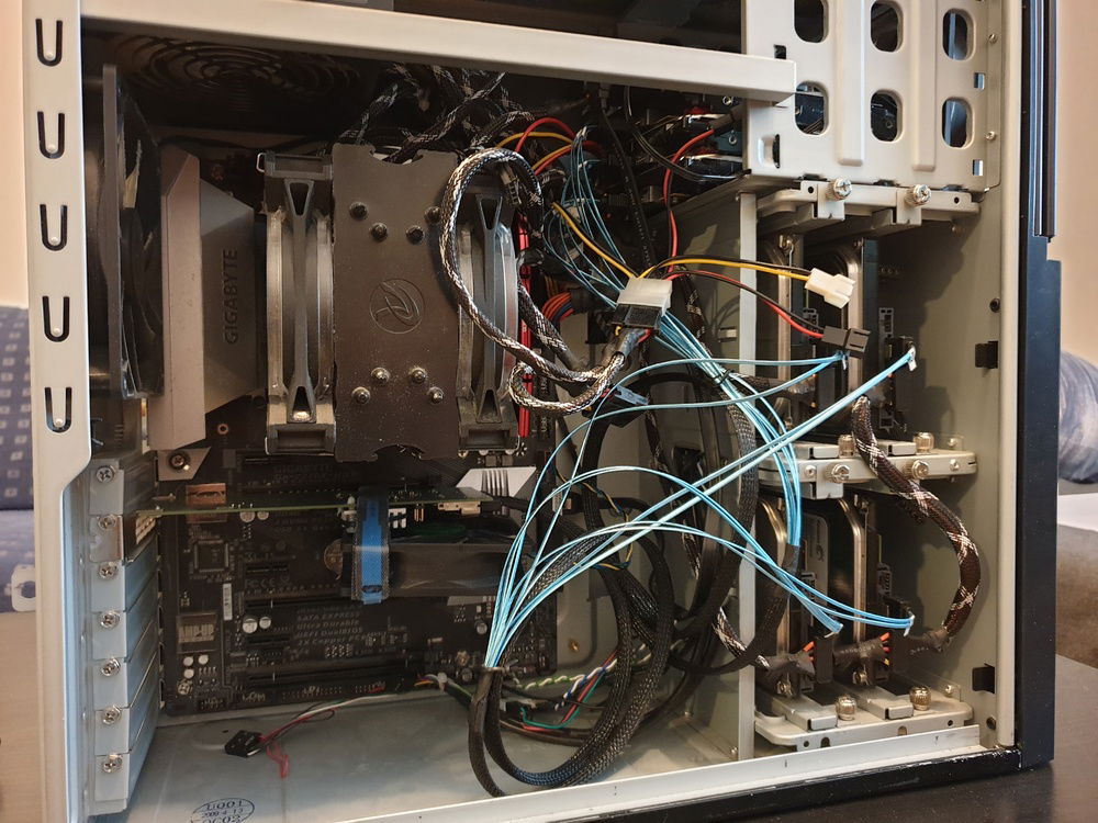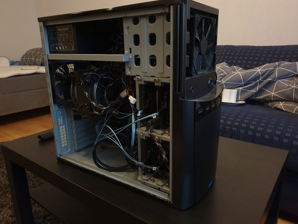 Motherboad and cpu from old pc and disks from school and old PCs. Everything is old and used. Case and psu from old school pc. Cooler is actually a pretty good and almost silent. HBA is from aliexpress, actually very good and already in IT so truenas works perfectly with it. 7 500GB HDDs in total plus 1 samsung 128gb ssd as boot disk. The 7 disks are in raid 6.