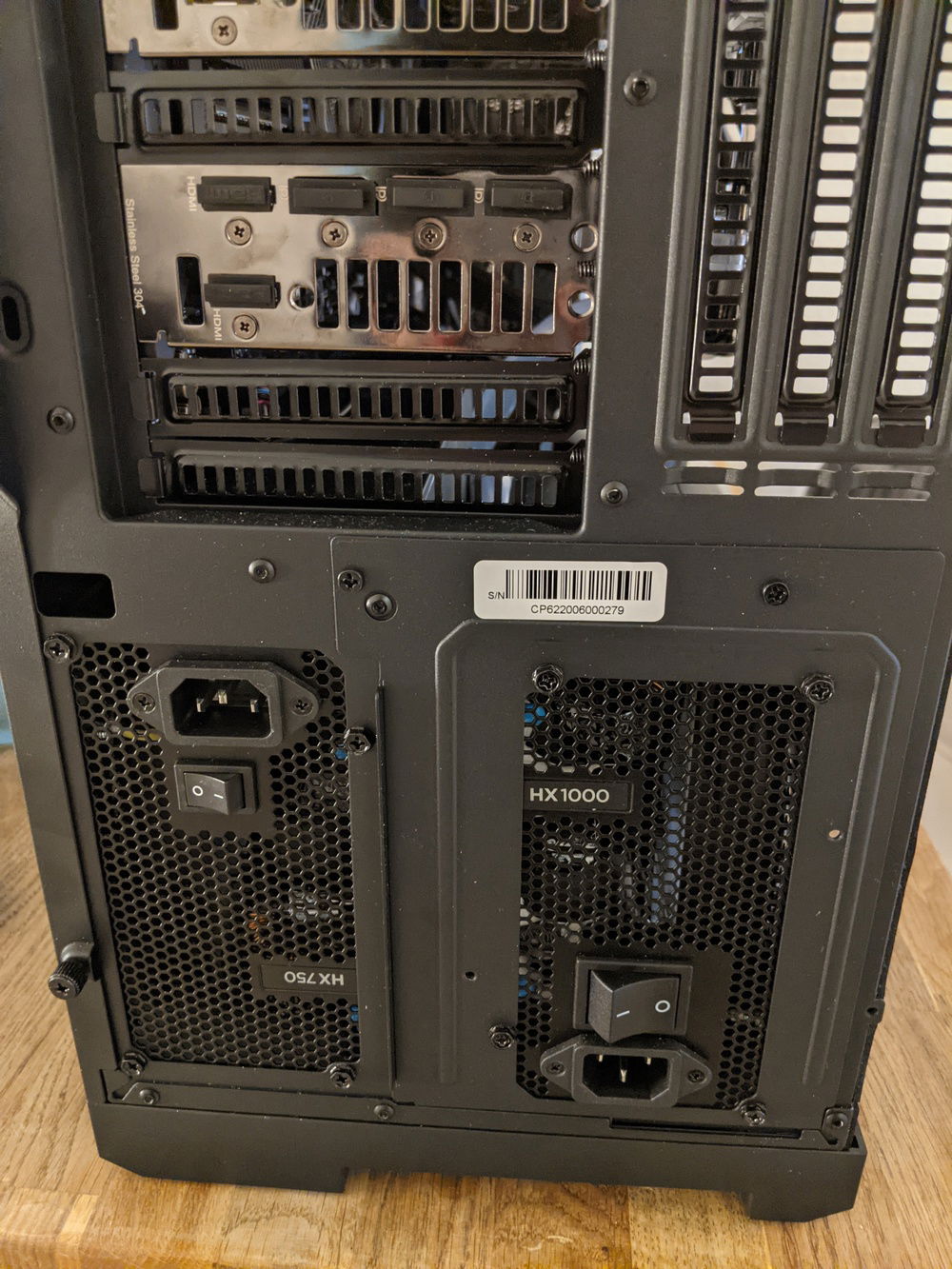The Corsair HX1000 has some severe coil whine that kind of ruins everything when the GPU's are loaded up, so a replacement for that has been ordered.