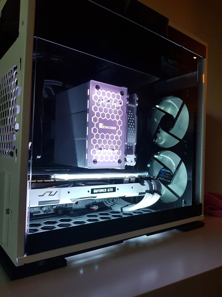 I really wanted to build an 8th gen Intel PC as well as a white themed PC, so when I saw the B360M Mortar Titanium pop up locally I knew I had to grab it, and managed to haggle the seller down to $70(AUD). I slowly bought everything else over time as they popped up on the market. Memory is half of a 32gb kit @3000mhz. Everything apart from case, HDD, cooler and cables are second hand. I really wanted to make this build look good, so I splashed a bit more cash on aesthetics than I usually would - the CPU cooler for example is way overkill for the 8100 but looks amazing. I spent a couple of hours on cable management due to the 301 being a very tight enclosure, but I think it really payed off in the end. I can confidently say this is one of the most attractive PCs I've built to date. I also love the form factor.