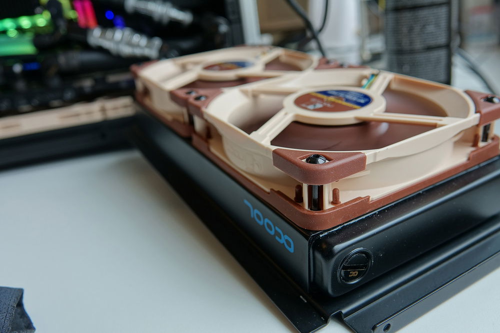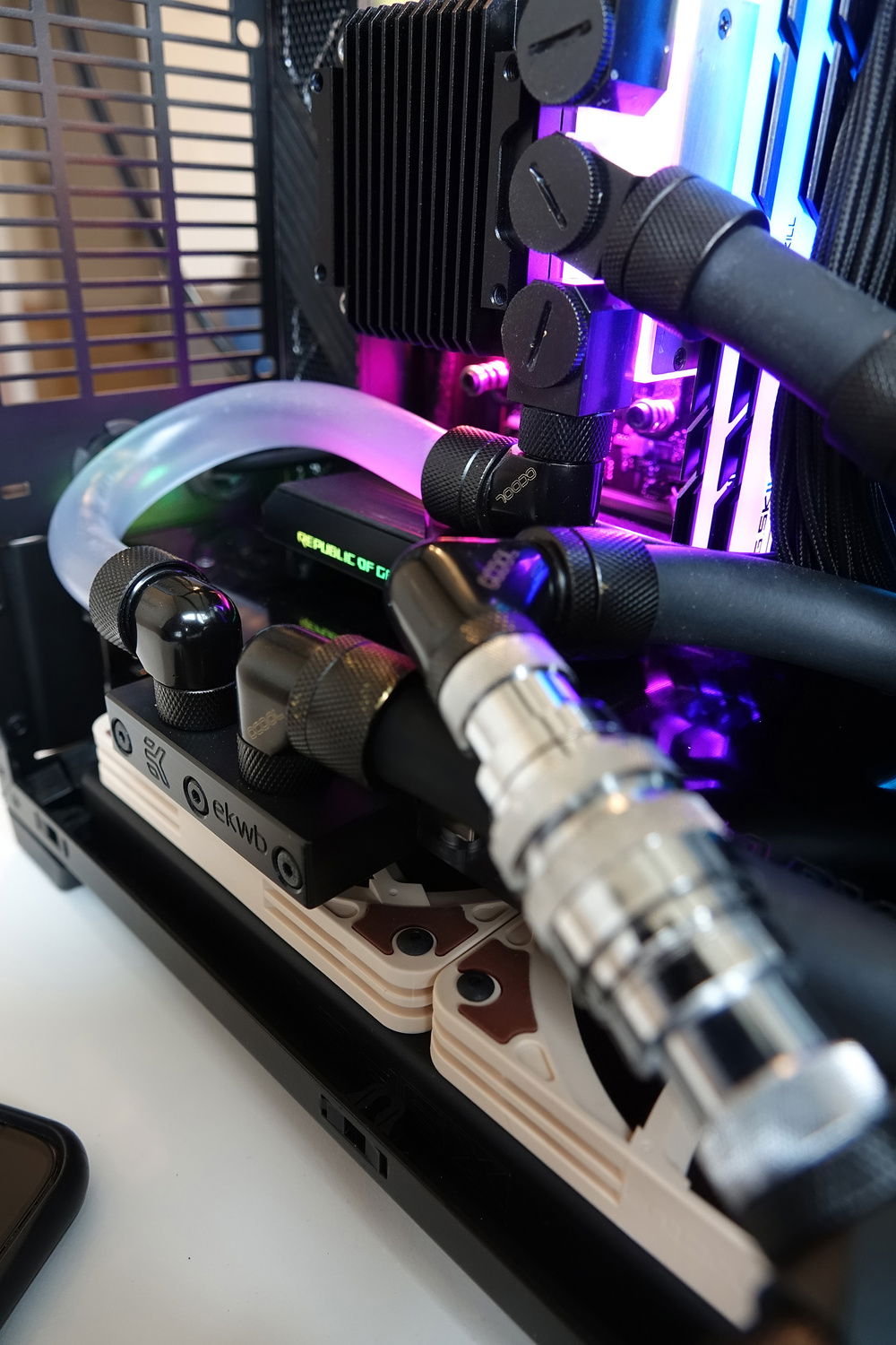 Install the EKWB RTX 3080, a Barrow flow sensor (SLF-V3) and possibly an Alphacool NexXxos ST25 Full Copper 92mm combined with a NF-A9 PWM chromax.black.swap on the back.