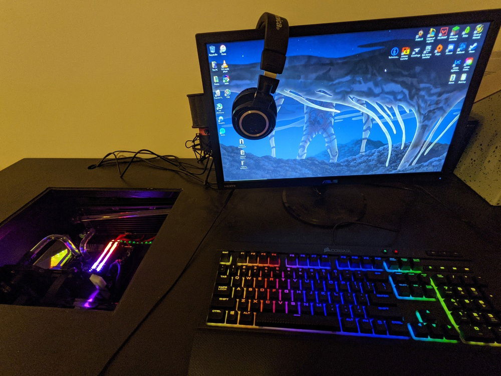 It's really my first build, the Meshify C one doesn't really count but I did take the tempered glass panel and the front IO from the case, cause budget. I plan on expanding the build, making it thinner (the height is really only for the pump, and it can be mounted horizontally), making sections like a PSU shroud and more lighting, cause I can't seem to make the ARGB from the pump and the GPU block work, literally tried everything.