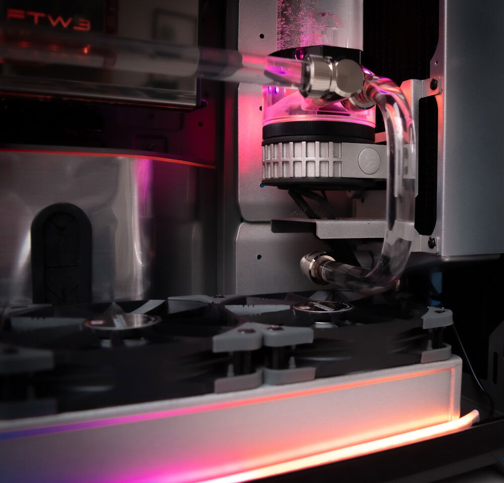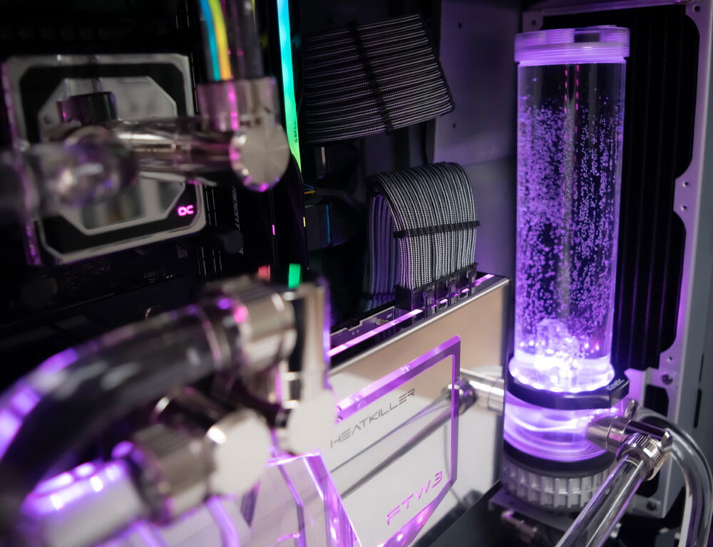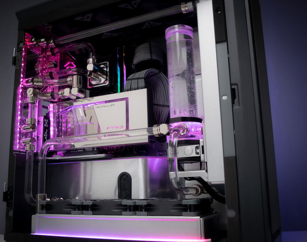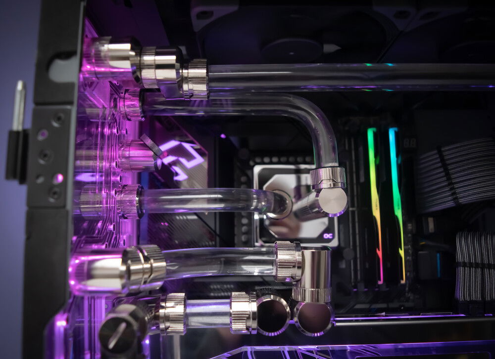 - CPU block = Alphacool Eisblock XPX Aurora Edge. We chose the Ni finish to match the build theme.