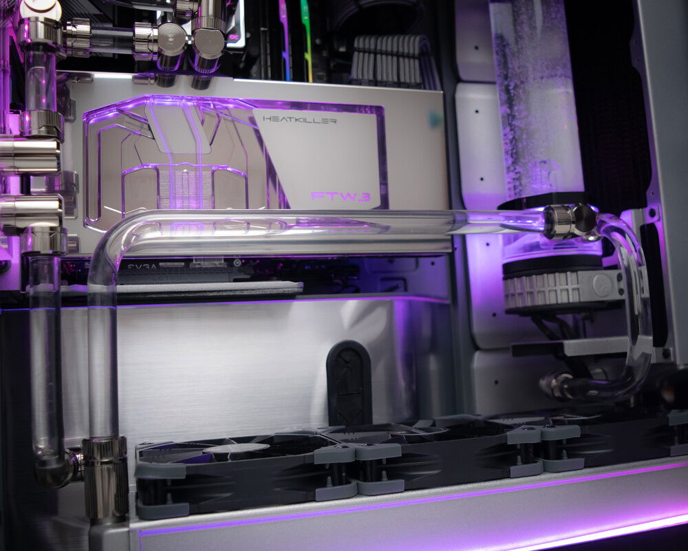 My client fancied a CPU upgrade in his SILVERADO build. Before installing the new hardware, I inspected his custom loop hardware and provided recommendations for upgrades where needed. I recommended to change out his BYKSKI GPU block as one of the bolts came loose and a small crack was forming around the area. SILVERADO's hardware upgrades included: