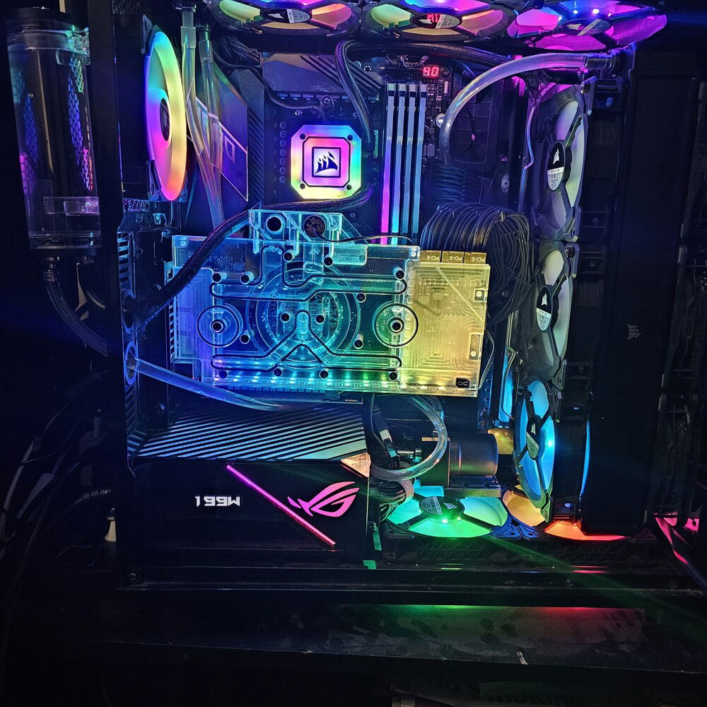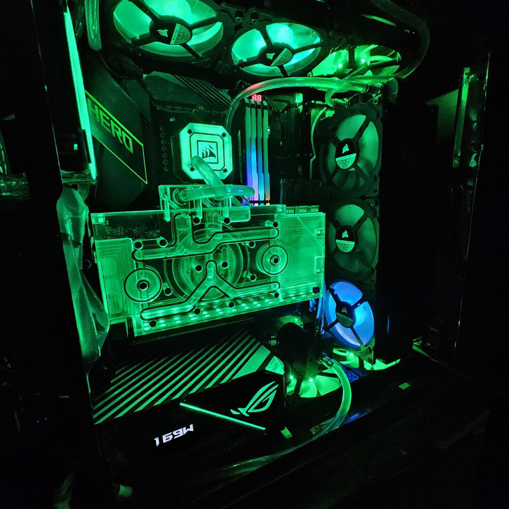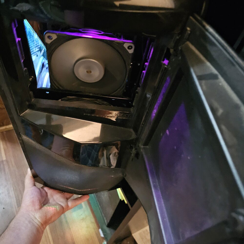 The ram sticks are temp readouts they all (except water temp light blue) range 30-80c and turn red at 85c the case is a 10 year old NZXT case (don't know the model) I ripped all the drive cages out and cut plastic on top to fit push pull fans