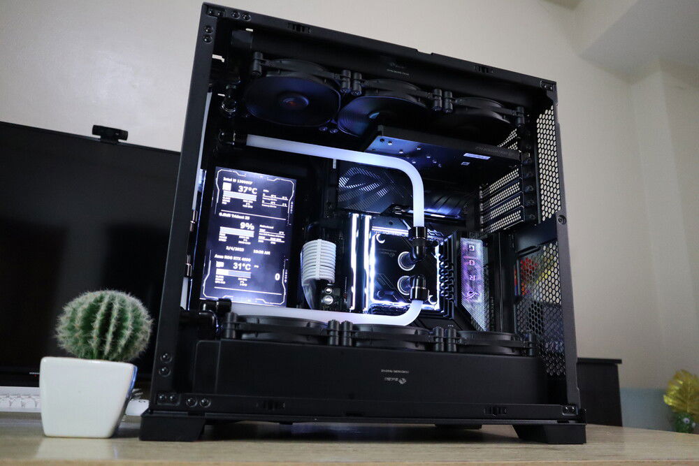 I probably won't be able to replicate this build unless the exact parts were ordered again, everything just fell into place. The LCD screen was exactly the same dimensions as the GPU block (which is why you can't see a GPU), the fans were perfect because the 3rd bottom fan wouldn't fit if it was a different model where the corner can't be taken off.