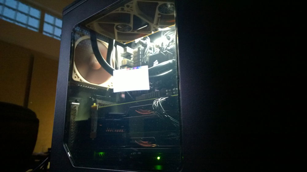 This used to be air cooled, but it was never enough. The AMD FX CPU just ran too hot. It has an AIO now.