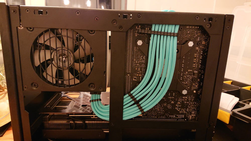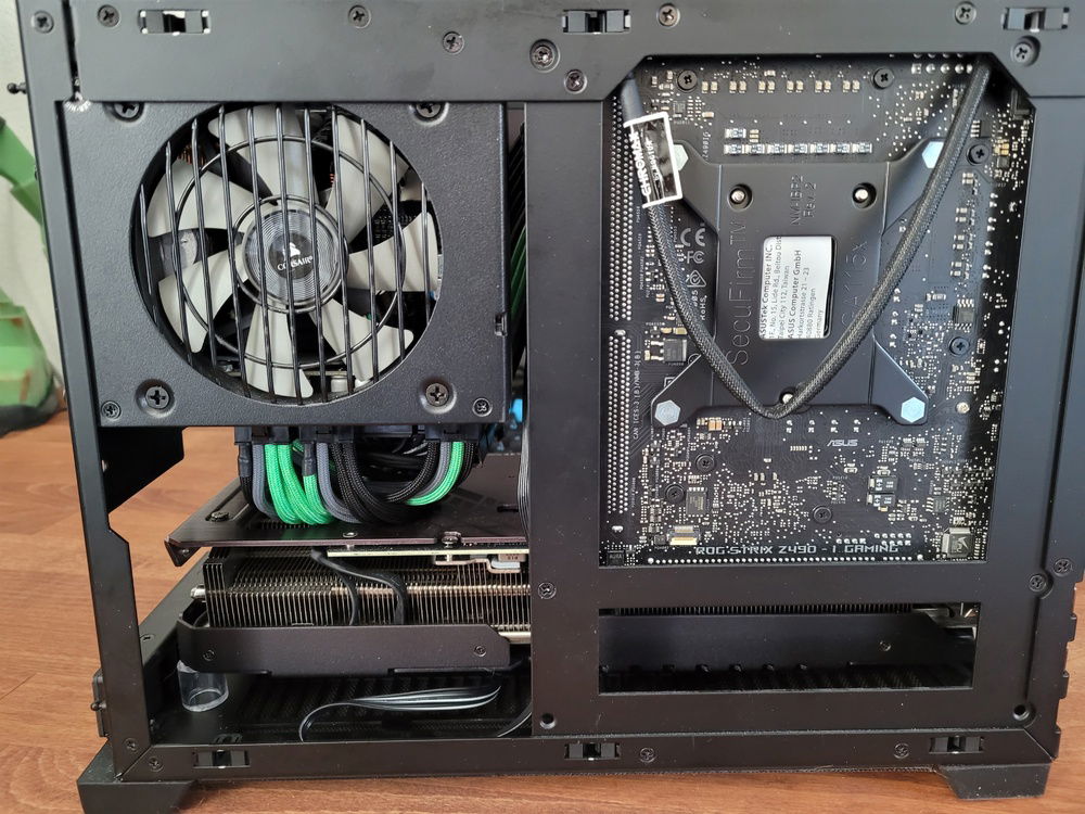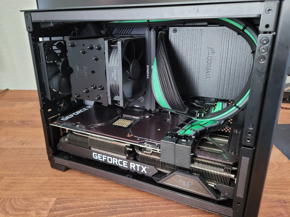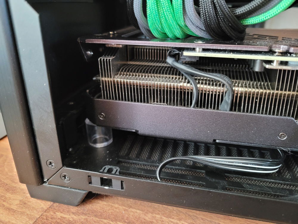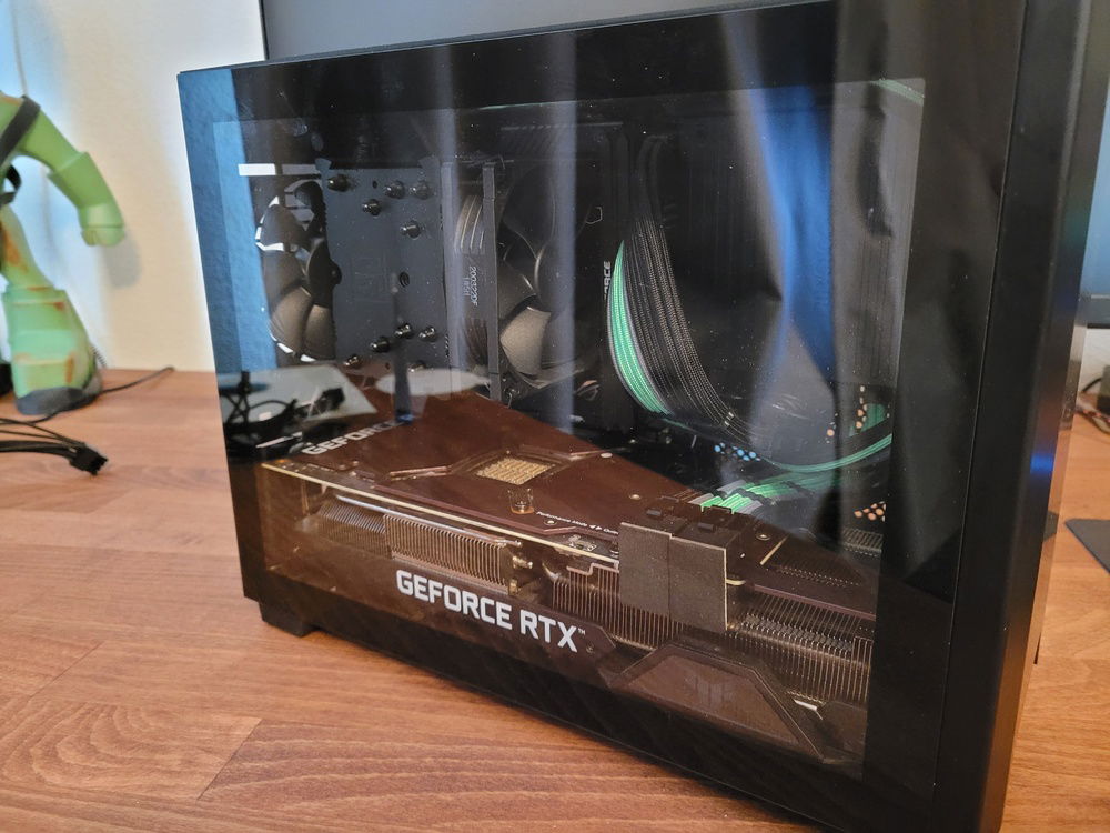 TG is coming from TechLens. This is a solid mod and feels like it was an original part of the case. Nevertheless airflow is greatly reduced. As a result fans have to rotate faster and the PC is definitely audible. Might change back to the original side panel to keep the db down.