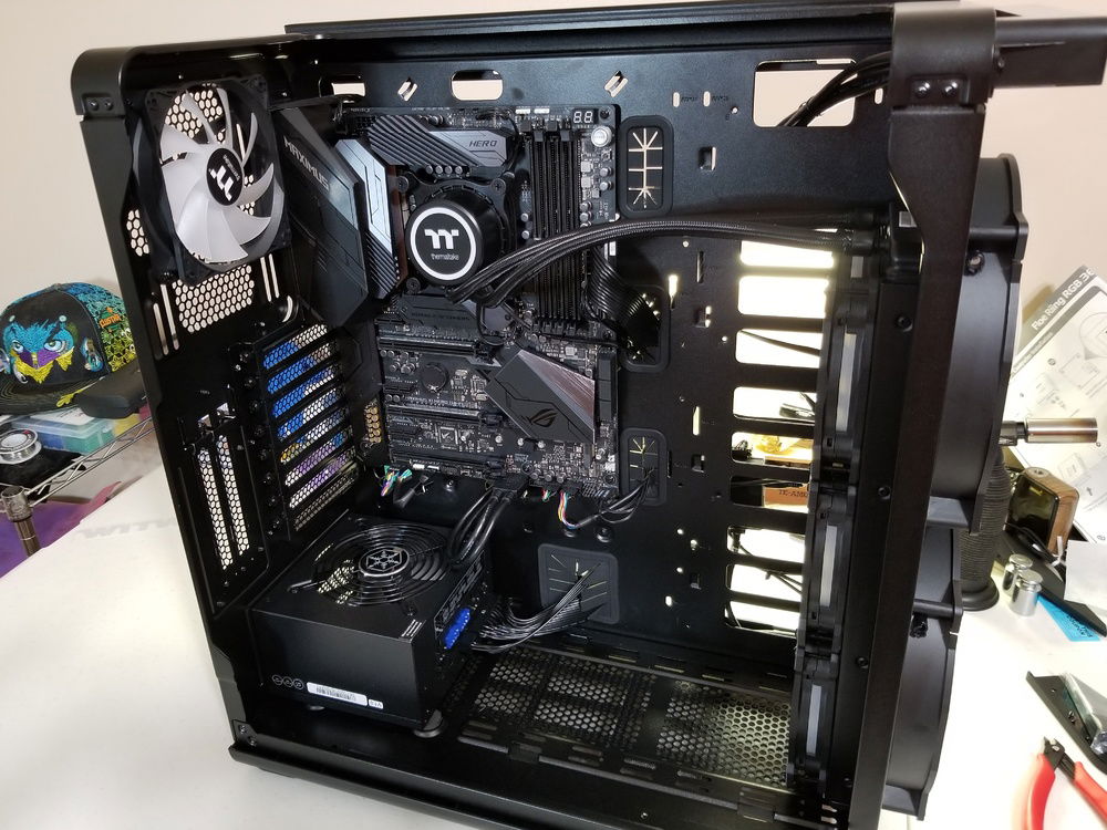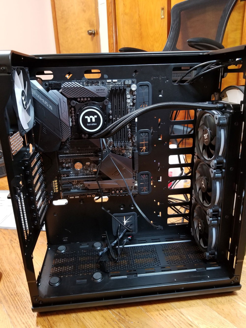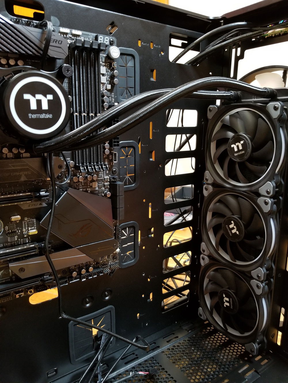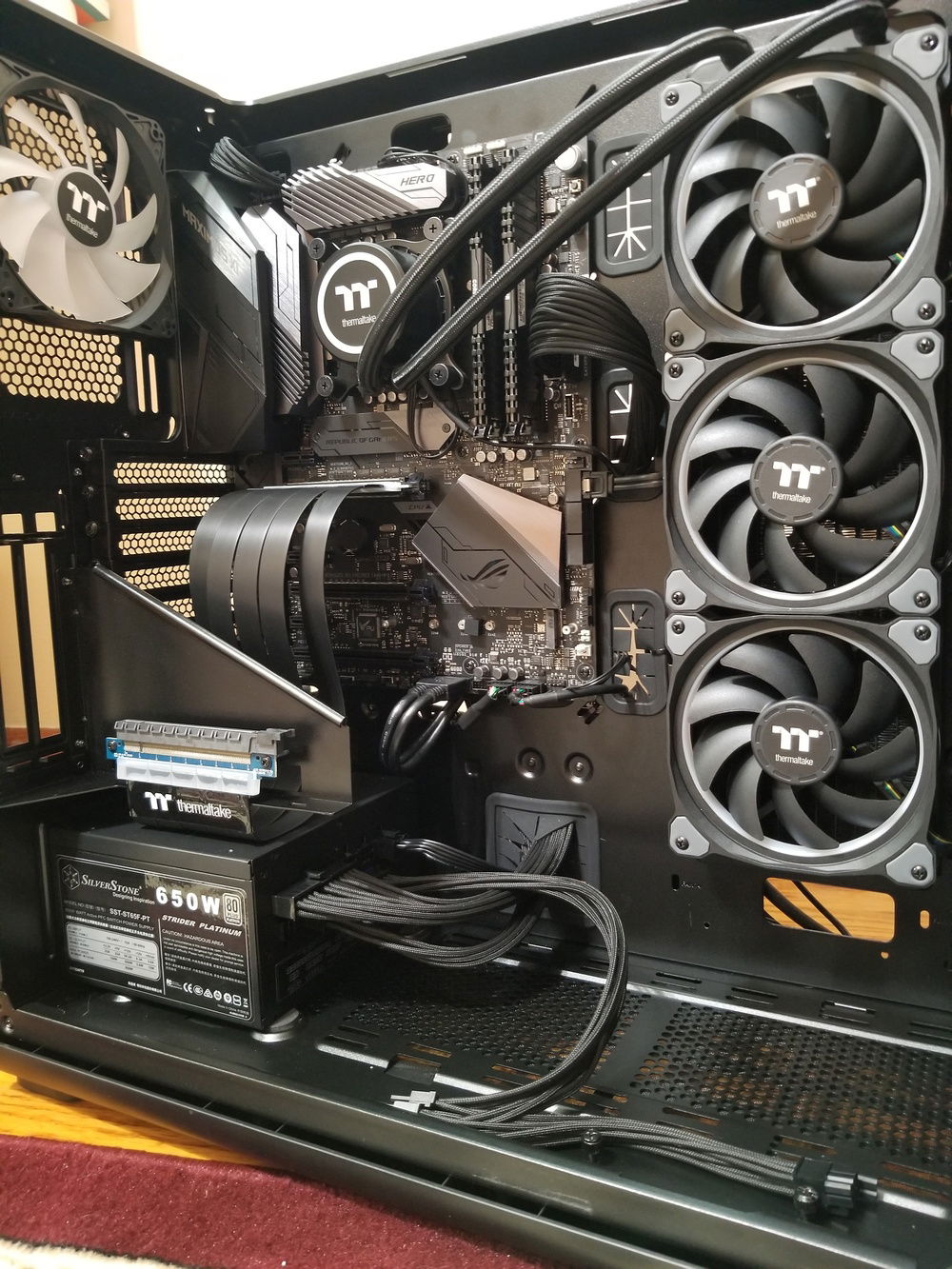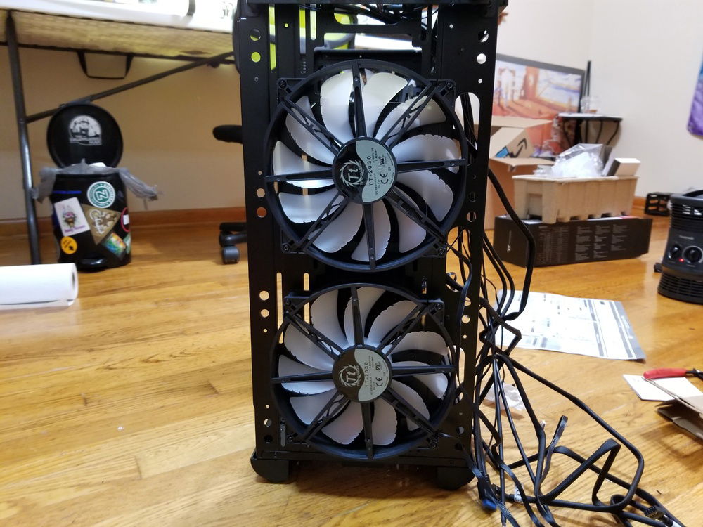 Card is here, used stock rear exhaust fan for a push pull setup on the hybrid cooler