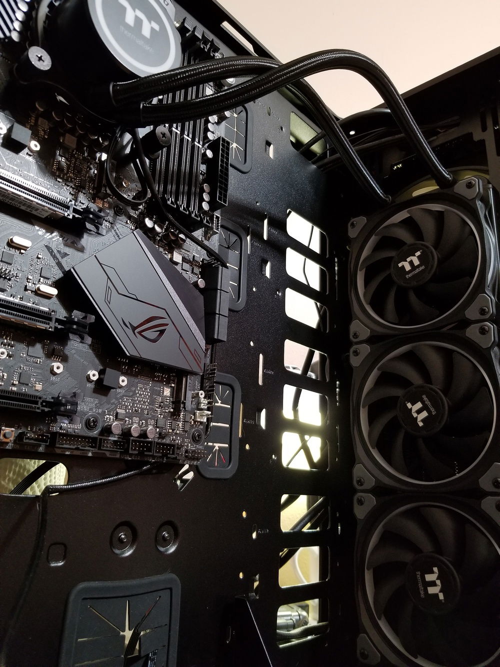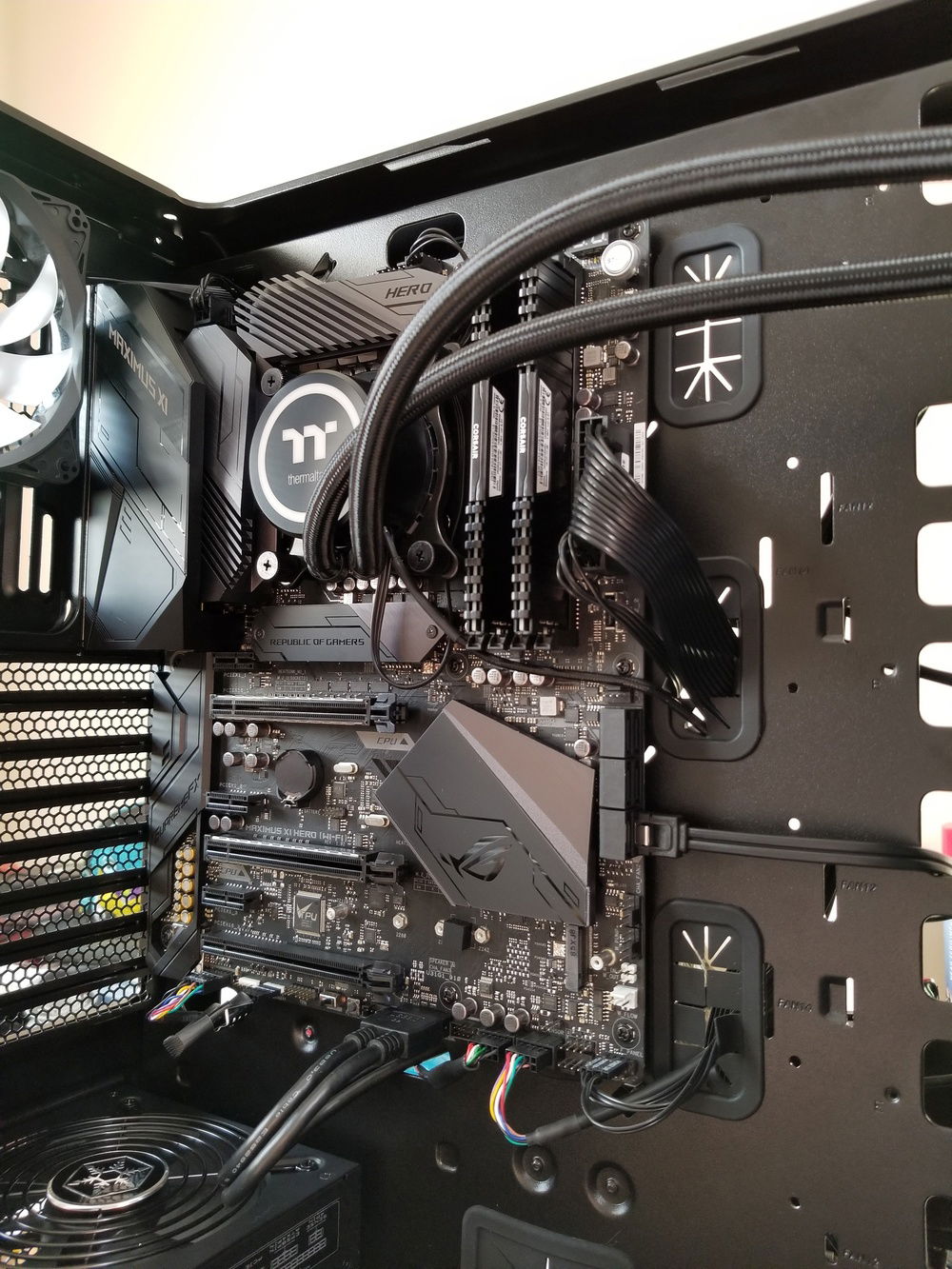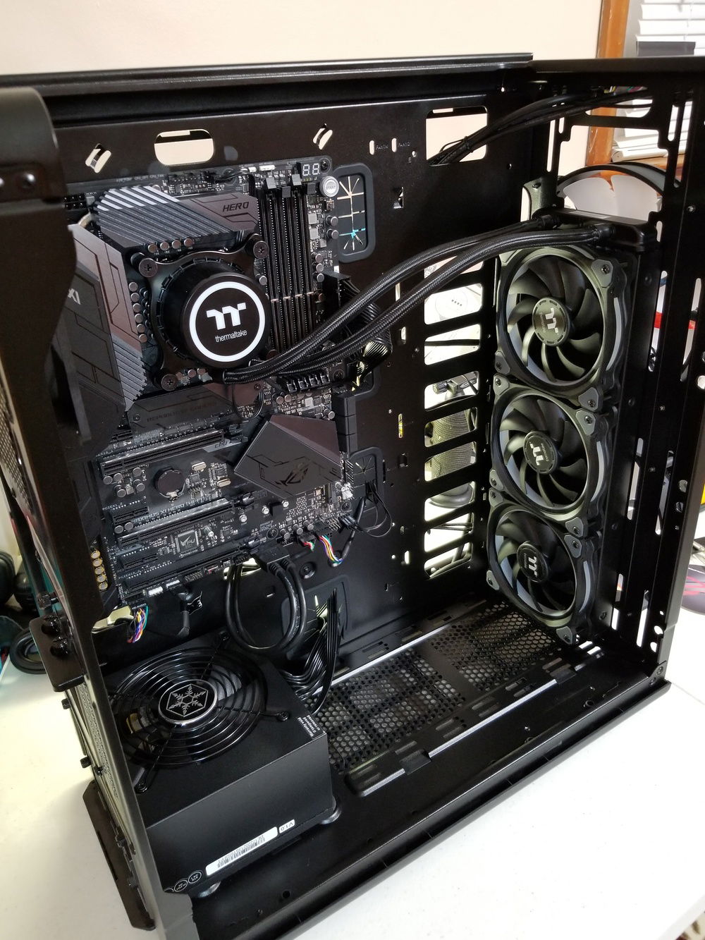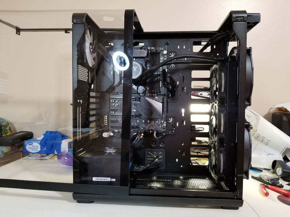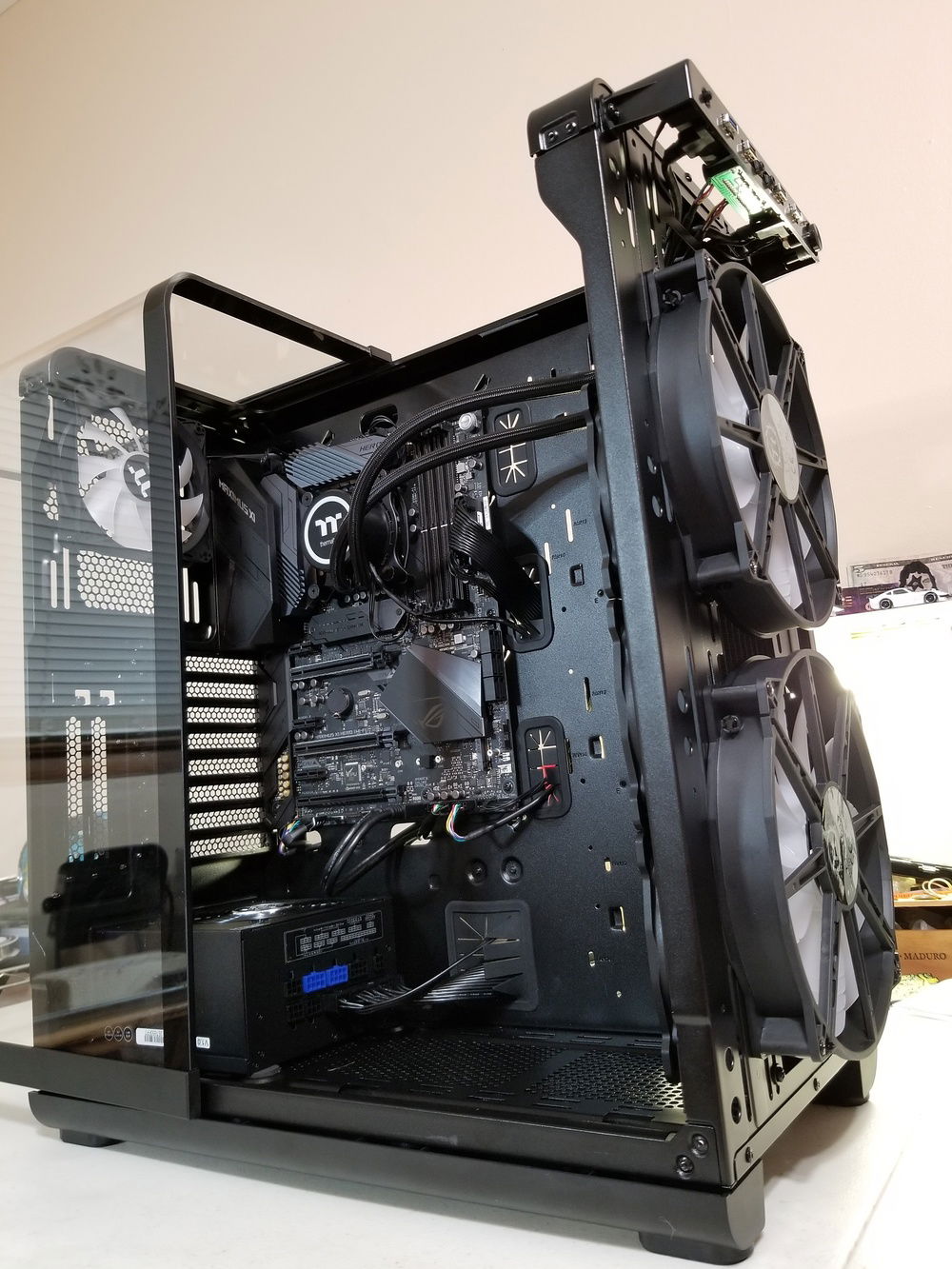 Card is here, used stock rear exhaust fan for a push pull setup on the hybrid cooler
